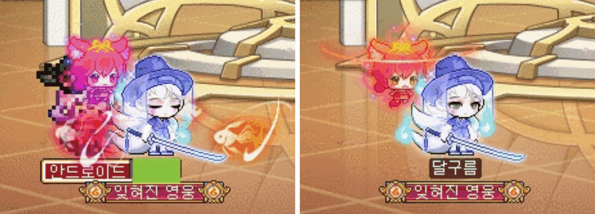 (위 : 리마 이전/아래 : 이후 아란의 파이널 차지)