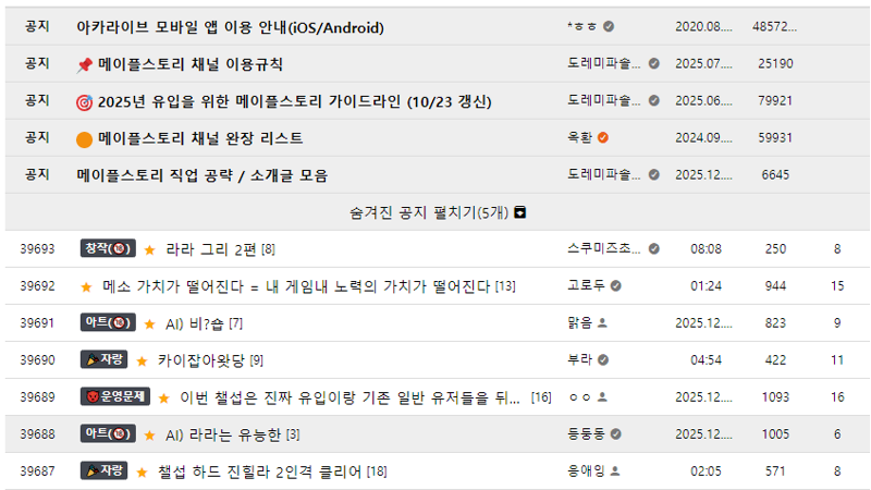 메이플스토리 인벤 자유게시판 게시판