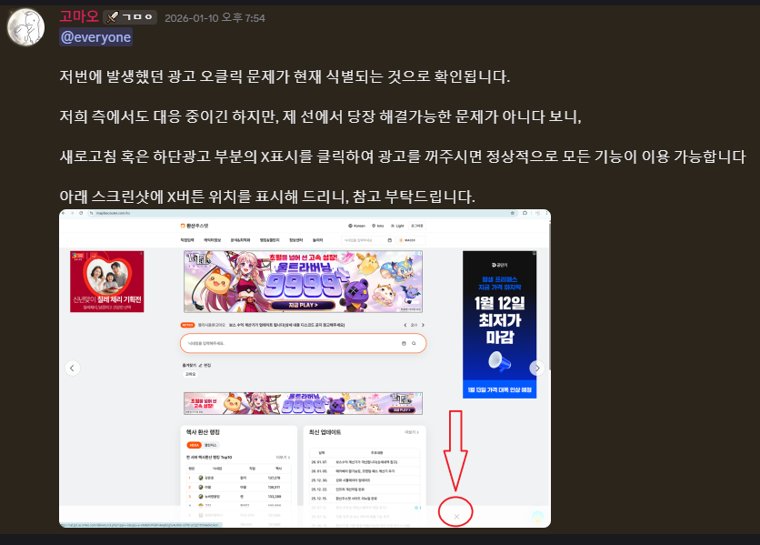 소신발언) 환산은 빠르게 하단광고 정상화 해야됨시발 하단 배너 X 눌러서 끄는것도 하루이틀일이지