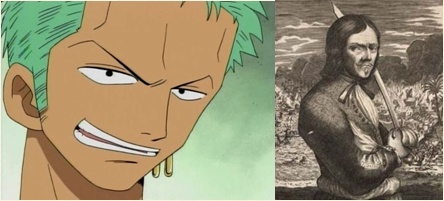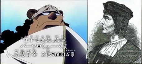원피스의 등장인물들중에는 실사인물들이 많습니다. ![]() 대 해군 대장 푸른 꿩 " 아오키지" 故마츠다 유사쿠 라는 일본의 배우 분이신데요. 아쉽게도 돌아가셨습니다.ㅠㅠ "원피스 작가이신 오다 에이치로 님께서 직접 만나뵙고 그리셧다고 합니다." ![]() 3대 해군 대장 노란 원숭이 " 키자루" 이분은 다나카 쿠니에 라는 배우 분이시구여 실제 목소리도 키자루 성우 분 목소리와 완전 똑같다고합니다 ㅋ ![]() 3대 해군 대장 붉은 개 "아카이누" 이분은 저도 잘.. 모르겟군요..ㅋㅋ ![]() 사황 흰수염 "에드워드 뉴 게이트" 레스링 선수 헐크 호건 이죠 " 레스링 채널을 보시다 " 아 이거구나 하고 삘을 받아서 바로 그리셧다고합니다.ㅋ 그릴때 상당히 힘들으셧데요 ㅋ" ![]() 칠무해 "동키 호테 도플라밍고" "실제 이분은 돈키호테 라는 케릭터 성격 과 하는 행동이 똑같다고 합니다.ㅋㅋ" ![]() 해적왕 "골.D.로져" 실제로 카리브해를 장악해서 해적왕이라는 칭호를 받은 "우르로져" 라는 해적이구여 ![]() 우드로져의 항해루트 ![]() 칠무해 "마샬.D.티치" 실제로 검은 수염이라 불렸던 악명높은 대해적 "에드워드 티치" 를 모티브 했구여 ![]() "롤로노아 조로" 실제 검을 3자루나 갇고다니는 해적사양꾼 이였던 "프란시스 롤로노아" 의 모티브구여 ![]() 칠무해 "바솔료무 쿠마" 이분은 실제로 희망봉을 발견한 해적 "바르톨로뮤 디아스" 의 모티브구여<제 생각에는 이름만 따온것 같내요 ㅋ> ![]() "도끼손 모건" 역사상 가장 성공한 해적 "헨리 모건" 의 모티브구여 ![]() "압살롬" 이스라엘의 왕 다윗의 셋째아들인 " 압살롬" 의 모티브 입니다. 저도 이렇게 까진몰랐는데... 헐크호건은 진짜 놀랍군여... 어쨋든 비밀이 점점줄고있구려...