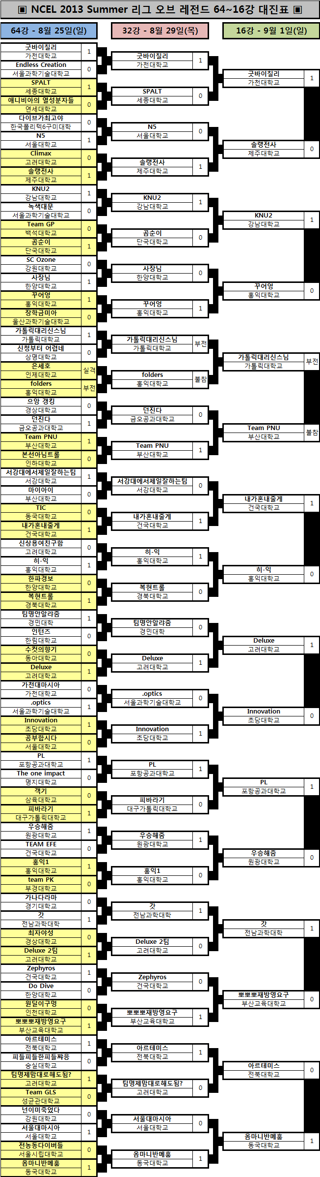 [대진표] 64강 ~ 16강 (종료)안녕하세요 NCEL 운영진입니다.