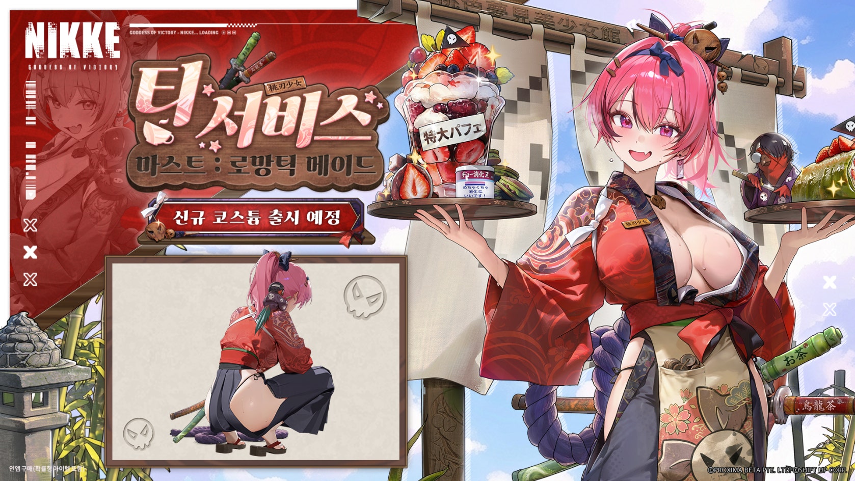 1. 한정 코스튬 : 마스트 : 로망틱 메이드 - 티 서비스 - 자고로 해적이란, 찻집에서도 로망을 찾을 수 있어야 한다. - 풀 보이스, 버스트 스킬 컷신, 스탠딩 포즈, SD특수 모션이 포함됩니다.