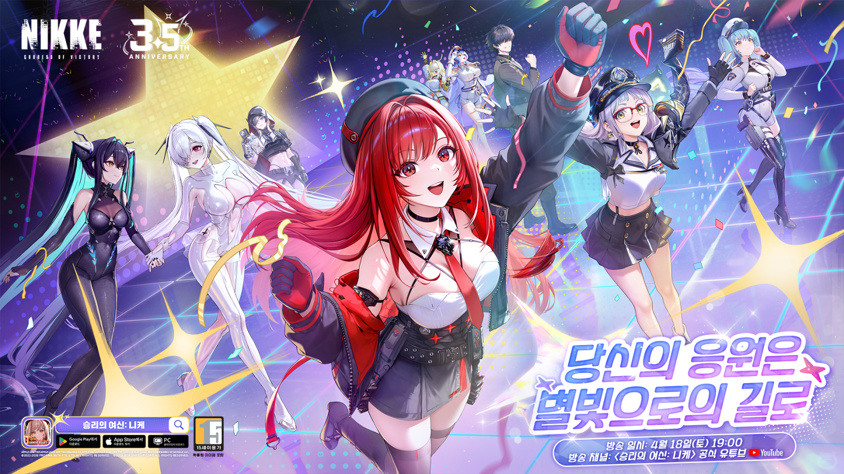 3.5주년 기념 방송 사전 안내📺 3.5주년 기념 방송 사전 안내 📺 「당신의 응원은 별빛으로의 길로」 <승리의 여신: 니케> 3.5주년 기념 특별 방송이 4월 18일(토) 19:00부터 진행될 예정입니다. 지휘관님의 많은 관심과 응원 부탁드립니다! ✅ 3.5주년 특별 방송 카운트다운 - 4/18(토) 18:30 ~ 19:00 ✅ 3.5주년 특별 방송 OPEN - 4/18(토) 19:00 📺 3.5주년 특별 방송 예약하기 https://youtube.com/live/07snJr2kMNM * 인앱 구매(확률형 아이템 포함) |