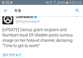 이번 에피떡밥 번역본.![]() [업데이트]천재 교부금 수령자이자 눔바니인인 에피 올라델레가 그녀의 홀로비드 채널에 의문의 이미지를 올렸고, '일하러 갈 시간!'이라고 선언했다. 필요한 것들: UR-15 섀시(뼈대) 브랜포드 팔 융합 드라이버 미니어쳐 토벨스타인 융합로 페인트 엑시움 음성 프로세서?(얻었음!) 루시오-오즈!(시리얼) 참고로 눔바니 공항 박살난거 찍은사람이 에피임. 개인적인 뇌피셜을 얘기하자면 저거 조합해서 만든 옴닉이 엑시움이고 외형은 얘일것같음 번역본 원본링크:http://gall.dcinside.com/overwatch/1681545 ![]()