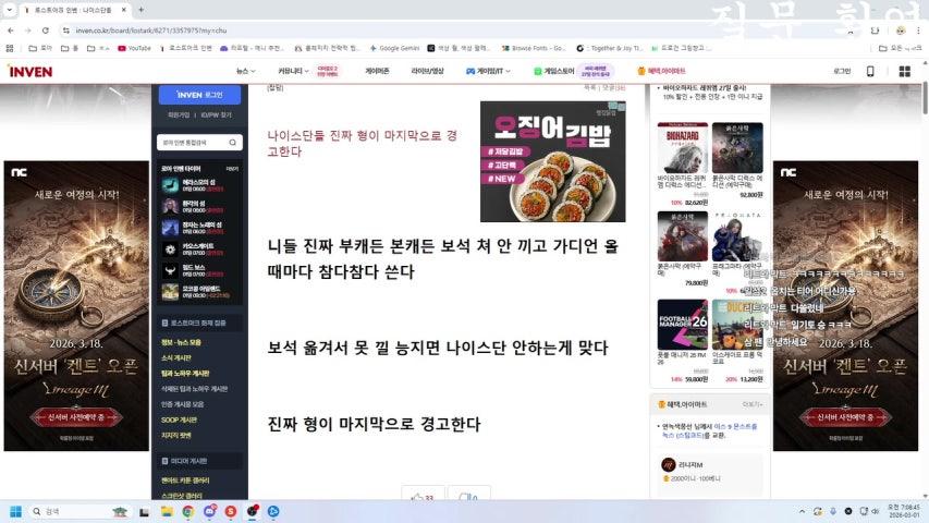 오버워치 메이 한줄 설구왕자 시작할때 핵이라 해서 무승부 할라했더니 나중에 게임 끝날때 자기가 지입으로 핵아니라고 하네 ㅋㅅㅋ 자기 점수 까이기싫어서 핵드립치는게 사람인가