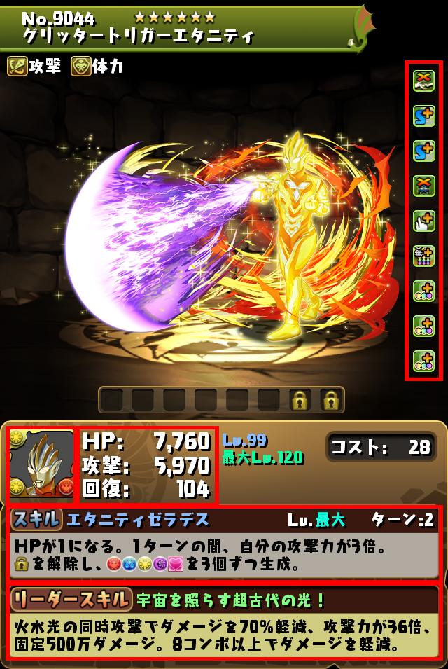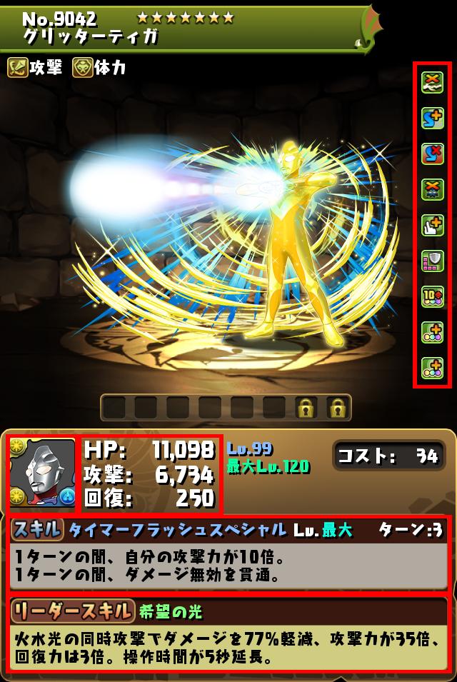 울트라맨 기존캐상향 (주속없음)![]() 8잠각 3속성 액티브 자신의 상한70억추가 쥬론도/초 빛골렘으로 싱크로각 10 개방 ![]() 8잠각 3속성 ![]() 3속성 액티브 턴 1감소, 배틀제한조건 사라짐 ![]() 빛횡은 압축하고 드강추가 ![]() 8잠각 3속성 액티브 자신의 상한추가 홉포/초 레드골렘으로 싱크로각 회복L개방 ![]() 8잠각 3속성 리더스킬76추가 초각성 +없던것들+추가, 올파라각 추가 ![]() 3속성 액티브 잠금해제 추가 초각성 +없던것들+추가, 올파라각 추가 ![]() 암흑내성만 완내성으로 증강 액티브 턴 4 감소