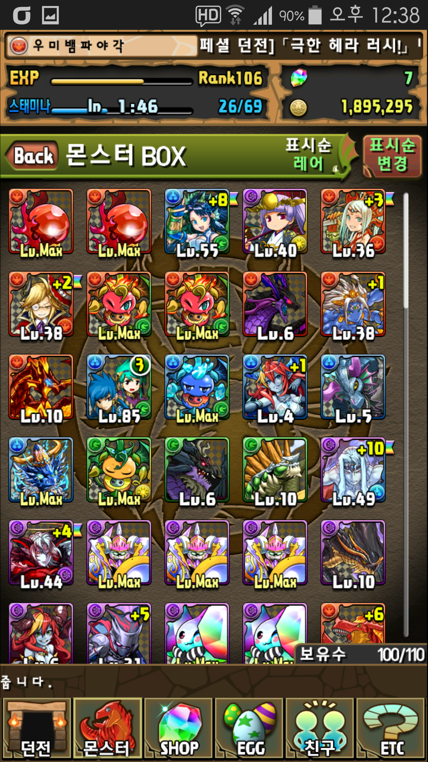 일단 공격력 순으로 내 몬스터임. 랭크는 103이고 보관함개수는 보이는 대로.