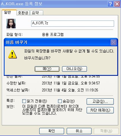 확장자 변경을 하시고나서 압축을 푸시고