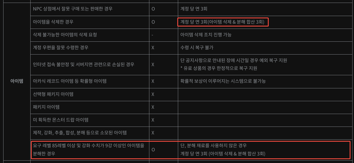[안내] 아이템 복구 지원 관련 운영정책 개정 안내![]() 안녕하세요. 소울워커입니다. 개정되는 소울워커 운영정책은 3월 13일(금) 적용될 예정인 점 안내드리며, 운영정책 변경과 관련된 세부 사항은 하단의 내용을 참고해 주시기 바랍니다. ■ 개정 내용 제 6조 복구 지원 기준 표 ■ 적용 일시: 3월 13일(금) ■ 변경 내용 복구 지원 기준 표 항목 추가 ![]() [소울워커 운영정책 안내 바로가기] 감사합니다. ![]() |