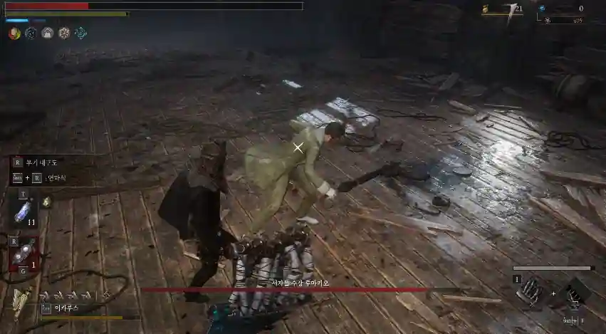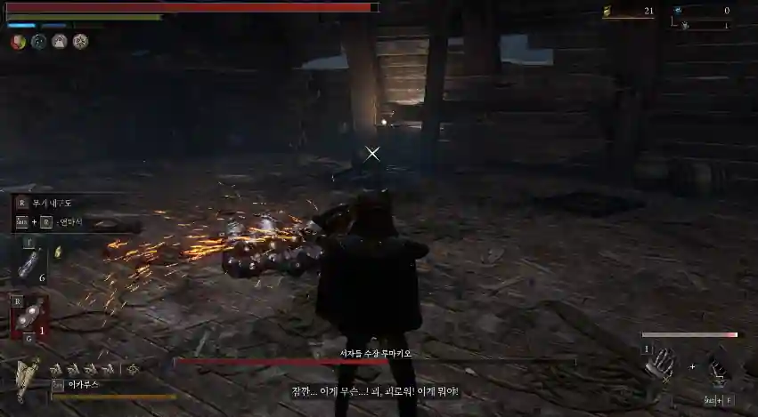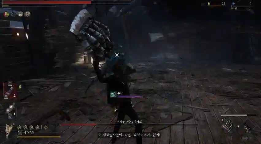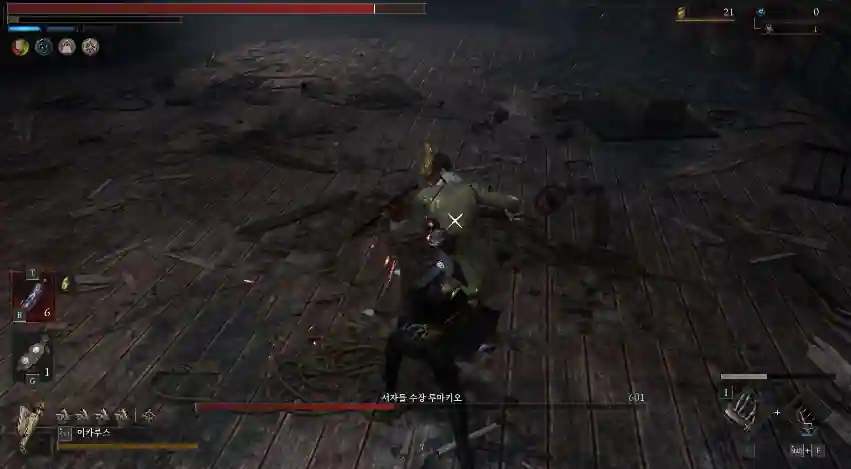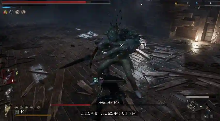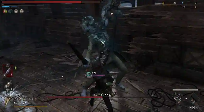 보스 '서자들 수장 루마키오' 공략 (퓨리 어택 옆으로 회피)![]() 서자들 수장 루마키오 [서자들 수장 루마키오 공략을 위한 키포인트 요약] 1. 다양한 타수의 패턴을 사용해 구분이 다소 어렵다. 다만 돌진하면서 때리는 2타 공격과 3타 공격 패턴 정도는 익혀두는 것이 좋다. 2. 연막을 뿌린 뒤에 폭발물만 뿌리거나, 퓨리 어택을 하거나, 둘 다 하는 세 가지 경우가 있다. 3. 퓨리 어택 사용 시 옆으로 회피해주면 뒤잡기 타이밍이 나오니 적극적으로 활용하자. 4. 체력이 약 40~50%가 되면 루마키오 주변에서 부식 가스가 생성되니 멀리 떨어지자. 이때 소모된 무기 내구도를 회복해야 한다. 5. 2페이즈의 돌진을 맞으면 부식 게이지가 크게 차오르니 주의. [1페이즈 패턴] - 체력이 약 60%가 되면 엘릭서를 마시고 약 80%까지 회복한다. ■ 달려오면서 2타 공격 - 후딜레이가 짧으니 강공격은 하지 말자. ![]() ■ 1타 후 퓨리 어택 - 자주 나오는 패턴은 아니다. - 다른 퓨리 어택과 동일하게 옆으로 회피하는 것으로 뒤잡기가 가능하다. ![]() ■ 연막 뿌리고 폭발물 뿌리기 + 퓨리 어택 - 폭발물만 뿌리는 경우가 있고, 퓨리 어택만 쓰는 경우가 있고, 둘 다 같이 쓰는 경우도 있다. - 폭발물은 데미지가 엄청난 편이니 절대 맞지 말자. - 타이밍에 맞춰 옆으로 회피해주면 퓨리 어택이 피해지면서 뒤잡기 기회가 나온다. (폭발물 터질 시 2번 회피) ![]() ■ 돌진하며 3타 공격 - 다른 공격에 비해 모션이 구분하기 쉬운 패턴. - 패턴 종료 후 강공격. ![]() ■ 4타 공격(1) - 3~4타를 연속으로 찌르니 주의. - 패턴 종료 후 강공격. ![]() ■ 4타 공격(2) - 빙글 돌면서 공격을 시작하면 해당 패턴. ![]() ■ 6타 공격 ![]() [2페이즈 패턴] - 체력이 약 40~50%가 되면 대사가 나오면서 주변에 부식 가스가 발생하니 멀리 떨어지자. - 이때 소모된 무기의 내구도를 회복. - 괴물로 변하면서 3연속 돌진을 사용한다. - 패턴 종료 후 강공격. ![]() ■ 1타 후 돌진 ![]() ■ 3타 공격 - 패턴 종료 후 강공격. ![]() ■ 3타 후 돌진 - 패턴 종료 후 강공격. ![]() ■ 퓨리 어택 후 4타 공격 ![]() ■ 포효 후 6타 공격 - 패턴 종료 후 강공격. ![]() ■ 부식 가스 뿌리기 - 2페이즈 시작 때와 동일하나 무조건 돌진 패턴을 쓰는 것은 아니다. 잘 보고 대처하자. ![]() [보상] 금빛 달팽이의 가면, 금빛 달팽이의 연미복 ![]() [선택지] 보스 처치 후 응징 또는 방치 중에 하나를 고를 수 있습니다. 어느 쪽을 골라도 스토리에 영향은 없지만 방치할 경우 향후 편지 하나를 추가로 볼 수 있게 됩니다. ![]() 안녕하세요, 인벤 기자 Nirr입니다. 기사에 틀린 내용이 있거나 궁금하신 점이 있으시면 댓글 남겨주세요!