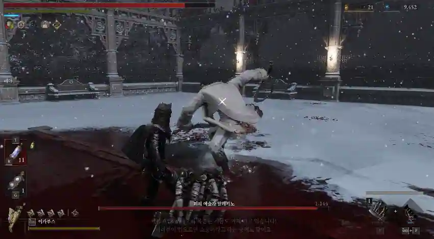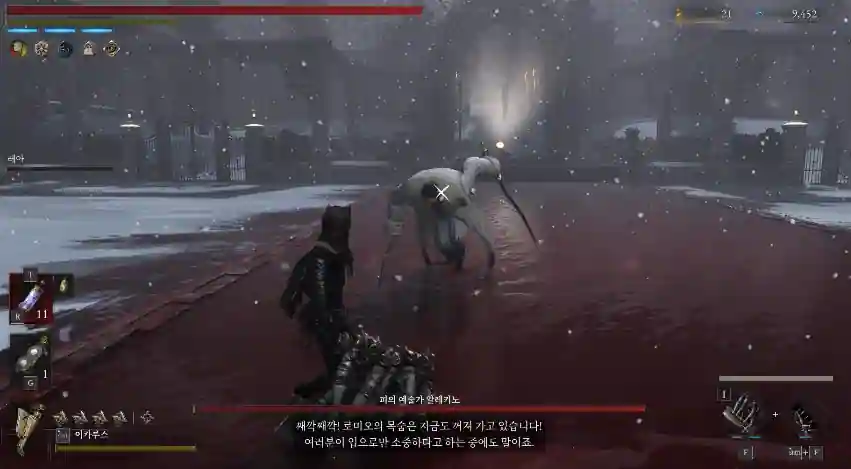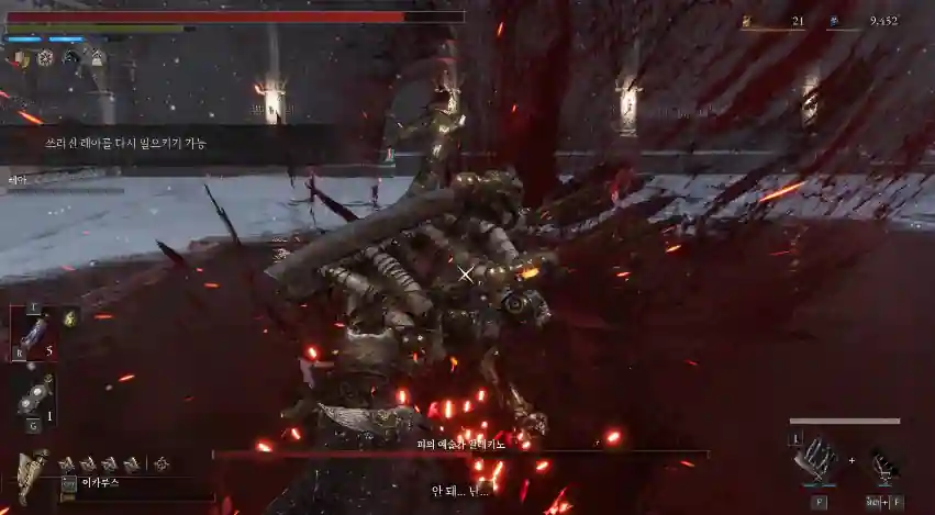 보스 '피의 예술가 알레키노' 공략 (2페 개막 패턴 숙달)![]() 피의 예술가 알레키노 [피의 예술가 알레키노 공략을 위한 키포인트 요약] 1. NPC 레아와 함께 전투를 할 수 있으며 이 경우 1페이즈는 회복할 일 없이 날먹이 가능하다. 2페이즈에서 레아와 함께 페이탈 어택을 할 경우 전용 컷씬도 있으니 꼭 구경해보자. 개인적인 도전이 아니라면 무조건 NPC를 사용하는 것이 좋다. 2. NPC와 함께 싸울 경우 NPC와 같은 방향에서 싸우지 말고 뒤를 잡도록 하자. 쓸 데 없이 공격에 휘말릴 수 있다. 3. NPC를 사용하지 않고 1:1로 전투할 경우 쌍룡검(본편 챕터8 메인 보스 에르고 교환)의 우클릭에 달려있는 패링 기능을 활용하면 1페이즈와 2페이즈 모두 보다 쉽게 잡아낼 수 있다. 4. 1페이즈는 그로기에 걸리지 않아도 딜을 적당히 누적하면 약한 폭발이 일어나면서 알레키노가 주춤한다. 이때 강공격 한 대 정도를 때릴 수 있는 타이밍이 나온다. 5. 알레키노를 상대하려면 2페이즈의 개막 패턴 대응법을 익히는 게 가장 중요하다. - 먼저 살짝 물러나서 거리를 벌린 후 투사체가 날아오는 타이밍에 맞춰 우측 대각선으로 뛰면서 피해주자. - 투사체가 끝나면 알레키노가 바로 돌진해오니 회피해주고, 즉시 달려서 멀어져야 공격 범위에서 벗어난다. - 이후 알레키노가 좌우로 이동하며 공격하는데 적당히 거리를 벌리면 2~3타 정도는 닿지 않을 수 있다. - 그다음 마치 톱처럼 연속으로 때리는 패턴과 이어지는 퓨리 어택은 반드시 퍼펙트 가드 해야 한다. - 마지막으로 1타를 한 번 더 때리고 주변에 피 폭발이 일어난다. 알레키노의 피 폭발은 가드가 불가능하니 회피로 대응해야 한다. 6. 2페이즈에서 톱날을 생성하고 점프 퓨리 어택 후 잡기를 시전하는 패턴이 있다. 톱날과 점프 퓨리 어택이 동시에 오기 때문에 대응하기 상당히 어려우나 데미지는 그리 강력하지 않다. 다만 이어지는 잡기는 데미지가 엄청나므로 이걸 회피하는 것에 집중하자. ※ 모든 공격 타이밍은 1:1 기준이며 NPC와 같이 싸울 때는 적당히 틈을 보고 강공격을 하자. [1페이즈 패턴] ■ 2타 공격 - 눈이 빨갛게 빛나며 시작하는데 전조 모션이 매우 짧아 알아차리기 어렵다. - 1타는 맞더라도 2타는 꼭 막아주자. ![]() ■ 4타 공격 - 두 가지 버전이 있으며 가장 자주 나오는 패턴이다. - 패턴 종료 후 강공격. (가끔 가다 후속 패턴에 맞을 수 있으나 고회차가 아니면 적당히 감수하자) ![]() ![]() ■ 5타 공격 - 패턴 종료 후 약공격. ![]() ■ 6타 공격 - 패턴 종료 후 약공격. ![]() ■ 7타 공격 - 패턴 종료 후 약공격. ![]() ■ 퓨리 어택 ![]() ■ 3타 후 퓨리 어택 - 후딜레이가 꽤 있으니 막은 후 다가가서 강공격. ![]() ■ 돌진하며 3타 후 퓨리 어택 - 멀리 있을 때 나오는 패턴. 돌진할 때 사용하는 와이어에도 약한 데미지 판정이 있으니 주의하자. - 후딜레이가 꽤 있으니 막은 후 다가가서 강공격. - 위 패턴과 해당 패턴의 퓨리 어택을 맞았을 경우 바로 6타 공격을 연계하는 경우가 잦으니 조심해야 한다. ![]() ![]() ▲ 퓨리 어택을 맞으면 바로 달려들어 6타를 때리는 경우가 잦으니 주의 [2페이즈 패턴] - 1페이즈 체력을 다 깎으면 컷씬 이후 체력이 100%가 되고 2페이즈가 시작된다. ■ 투사체 발사 + 돌진 + 피의 폭풍 + 피의 난무 - 2페이즈 개막 패턴. 시간이 지나면 다시 사용하기도 한다. - 해당 패턴 대응법을 반드시 숙달해야 알레키노 클리어가 가능하다. 순서는 다음과 같다. - 처음에 거리를 벌린 후 투사체가 날아오는 타이밍에 맞춰 우측 대각선으로 뛰면 피해진다. → 투사체가 끝나면 알레키노가 바로 돌진해오니 회피해주고, 바로 달려서 멀어지자. → 이후 알레키노가 좌우로 이동하며 공격하는데 거리를 벌리면 2~3타 정도는 닿지 않을 수 있다. → 그다음 마치 톱처럼 연속으로 때리는 패턴과 이어지는 퓨리 어택은 반드시 퍼펙트 가드 해야 한다. → 마지막으로 1타를 한 번 더 때리고 주변에 피 폭발이 일어난다. 피 폭발은 가드가 불가능하니 회피하자. - 해당 패턴 종료 후 알레키노가 비웃는 모션을 취하는데 이때 꽤 긴 딜타임이 나오니 바로 공격하자. ![]() ![]() ■ 2타 후 피 폭발 - 피 폭발은 가드가 불가능하니 회피하자. ![]() ■ 3타 공격 - 패턴 종료 후 약공격. ![]() ■ 달려오며 3타 공격 - 패턴 종료 후 강공격. - 단, 3타 이후 바로 3타 또는 4타 + 연속 톱날을 사용하는 경우가 있으니 주의해야 한다. - 두 패턴의 모션 속도가 살짝 다르니 잘 살펴보자. ![]() ![]() ▲ 3타 이후 바로 3타 또는 4타 + 연속 톱날을 쓰기도 하니 조심하자 ■ 4타 후 피 폭발 - 피 폭발은 가드가 불가능하니 회피. ![]() ■ 7타 공격 후 연속 톱날 - 공격 타이밍이 애매하니 공격은 패스하자. ![]() ■ 톱날 생성 + 점프 퓨리 어택 + 잡기 - 톱날과 점프 퓨리 어택이 동시에 들어오기 때문에 굉장히 성가신 패턴. - 다행히 둘 다 데미지는 강력하지 않으나 이어지는 잡기는 절대 맞으면 안 된다. 이것만 회피하자. ![]() ■ 달려와서 퓨리 어택 후 잡기 - 자주 쓰는 패턴은 아니다. ![]() [보상] 비밀 방 열쇠, 인도하는 자의 가면, 인도하는 자의 전투복, 모나드의 장미검 ![]() 안녕하세요, 인벤 기자 Nirr입니다. 기사에 틀린 내