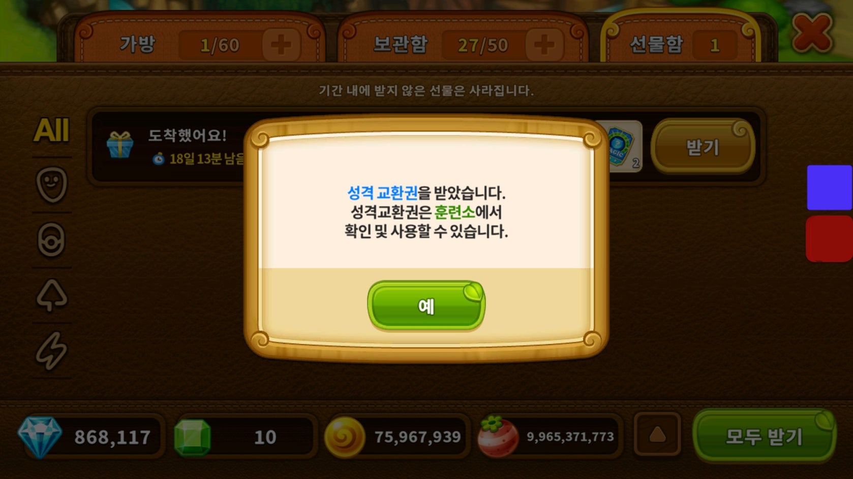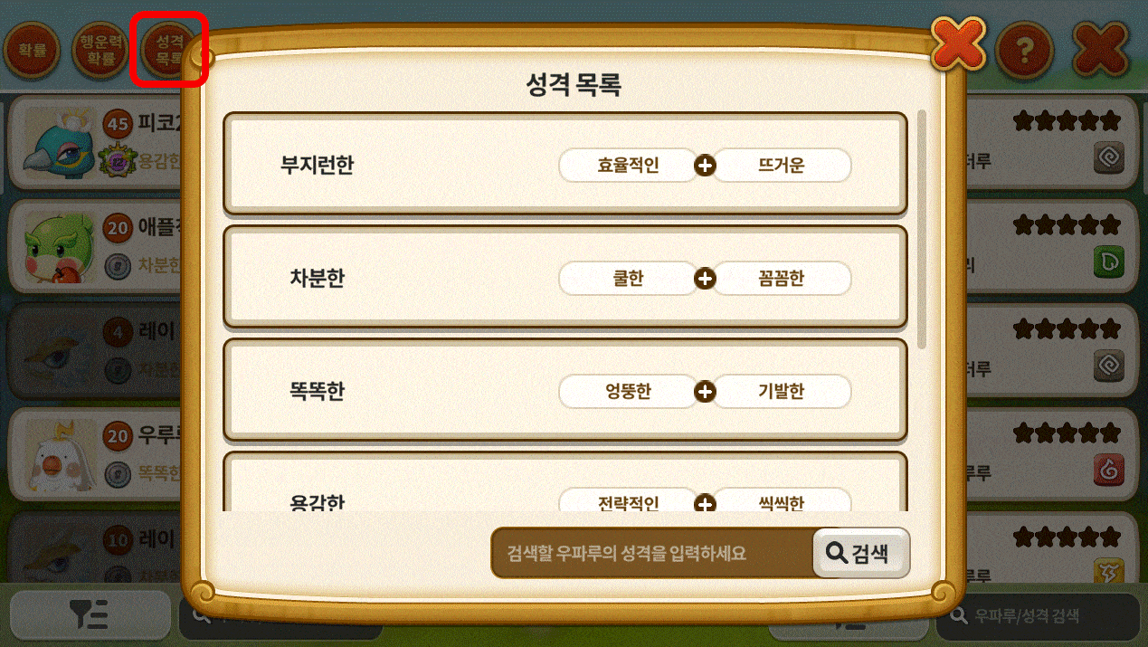 1. 신규 업데이트 ● 신규 우파루 추가 ● 신규 스킨 추가 2. 일부 콘텐츠 변경 사항 ● 차원 관리소 보너스 우파루 기간 연장 - 차원 관리소에서 차원의 마나볼 획득 보너스가 적용되는 우파루의 기간이 연장됩니다. ● 차원 상점 ‘스텔라’ 우파루 판매 기간 연장 - 차원 상점에서 구매 가능한 별속성 ‘스텔라’ 우파루의 판매 기간이 연장됩니다. ● 차원 돌파 시스템 변경 - 24.05.14(화) 점검 이후 승급된 우파루는 차원돌파 재료로 사용할 수 없도록 시스템이 변경됩니다. ● 보관함 보관 개수 변경 - 05.14(화) 장식 및 아이템 획득 방식 변경에 따른, 보관함 보관 개수와 확장 개수가 변경됩니다. 3. 기능 및 UI / UX 개선 ● 장식 획득 방식 개선 - 일반/길드/차원 상점에서 장식 구매 시, 획득 방식이 개선됩니다. ※ 미리보기 버튼 선택 시, 기존 방식대로 장식을 구매할 수 있습니다. - 뽑기/이벤트 등에서 장식 획득 시, 획득 방식이 개선됩니다. ● 타임캡슐 획득 방식 개선 - 선물함에서 타임캡슐 수령 시, 가방이 아닌 [타임캡슐 보관함]에 바로 이동하도록 개선됩니다. - [타임캡슐 보관함]에서 타임캡슐 아이템 잠금 설정이 가능합니다. ※ 타임캡슐 잠금 설정된 아이템은 사용 가능한 개수에서 제외됩니다. 따라서, 아이템 사용을 위해서는 [타임캡슐 보관함]에서 잠금 해제 후 이용 부탁드립니다. ● 기타 아이템 획득 방식 개선 - 마법 뽑기 티켓/프리미엄 뽑기 티켓/차원의 결정/성격 교환권 등 획득 방식이 개선됩니다. ● 크로스 화면 내 성격 목록 추가 - 크로스 진행 시, 상단 [성격 목록] 버튼을 통해 성격 컬렉션에서 획득한 성격의 조합법을 확인 및 검색할 수 있습니다. ● 성격 이름 ON/OFF 기능 추가 - 옵션 > 게임 설정 > 고급 설정 > [성격 이름 보지 않기] 기능 추가로 성격 이름의 노출 여부를 설정할 수 있습니다. ● 친구 목록 개선 - 친구 화면에서 ‘기본 순서 / 접속일 순’으로 정렬 기능을 선택할 수 있습니다. - [오래 전]으로 표기되는 기준 일자가 변경됩니다. ● 이외 개선 사항 - 우파루/매직/차원 크로스마다 필터가 개별 적용되도록 개선됩니다. - 일괄 먹이주기 진행 시, 먹이가 부족한 경우 빨간색 텍스트로 안내되도록 개선됩니다. - 우파루 오딧세이 앱 아이콘이 변경됩니다.(0.5주년 업데이트 버전 → 기본 버전)