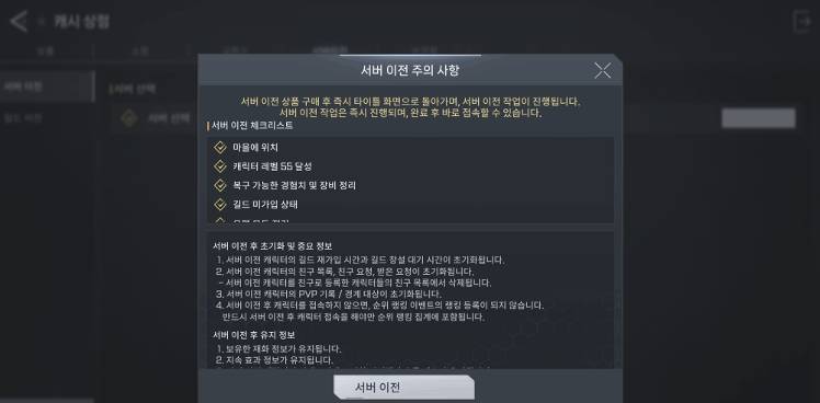 ■ 서버 및 길드 이전 상세