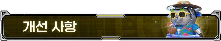 🔸기타 - 아이템 기간 만료일을 확인할 수 있는 리스트가 추가됩니다. - [컬렉션] → [필터] 에서 등급, 품질, 강화 단계 필터가 추가됩니다. - [컬렉션] → [일괄 구매] 버튼 클릭 후, 스크롤 없이 한 번에 확인 가능한 컬렉션 등록 아이템이 4개에서 5개로 변경됩니다. - [메뉴] → [제작]에서 제작 아이템을 등급순으로 정렬할 수 있도록 정렬 버튼이 추가됩니다. - [메뉴] → [제작]에서 즐겨찾기 탭에 등록된 장비가 있을 경우, 제작 메뉴 진입 시 즐겨찾기 탭이 오픈되도록 개선됩니다. - 점검 시 타이틀 화면에서 캐릭터 선물하기 이용이 불가하도록 개선됩니다. - 캐릭터 선물하기 진행 중 잘못된 선물 코드 입력 시 경고 문구 노출 후 선물 코드 입력 메뉴가 닫히도록 개선됩니다. - 이모티콘 즐겨찾기 기능이 추가됩니다. - 장시간 미입력 시 타이틀 이동 후 스페이스바를 통해 팝업창이 닫히도록 개선됩니다. - 이벤트 관련 재화 획득 시 [설정] → [전투] → [획득]의 등급 설정 옵션에 영향을 받지 않도록 개선됩니다. - 런처 소환 후 런처의 방향이 공격 당하는 방향으로 바라보도록 개선됩니다. - 타이틀 화면에서 버벅임 현상이 발생하지 않도록 개선됩니다. - 로버 소환 시, 렐릭이 오픈되는 연출 시간이 단축됩니다. - Ctrl+Z 쿠폰 내 복구 가능 기간 표기 시, 시간 정보(시, 분)까지 표기되도록 개선됩니다. * 12월 10일(수) 업데이트 이후 지급되는 Ctrl+Z 쿠폰부터는 Ctrl+Z 쿠폰 지급 이후에도 지정된 기간 내 파괴된 장비 및 합성 실패 이력을 복구 가능하도록 변경됩니다. - 거래소 최소 판매 금액이 조정됩니다.