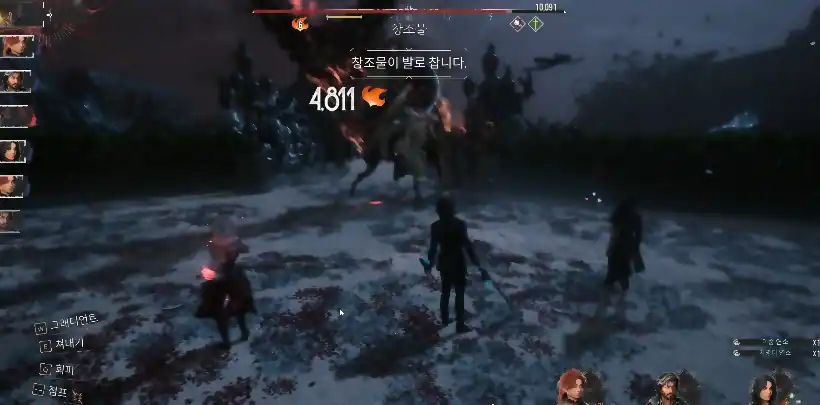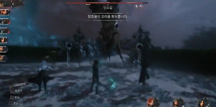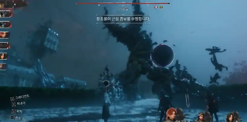 보스 「창조물」 패턴 공략 (잡몹 처리가 우선)클레르 옵스퀴르:33 원정대 뤼미에르에서 나오는 중간보스입니다. 강력한 잡몹 2마리와 함께 등장하는데, 여기까지 오면서 잡몹 패턴은 많이 보셨을테니 생략하겠습니다. 전투 시작부터 파티 전체에 반전 효과를 걸고 시작합니다. 상태 이상 걸렸을 경우 즉시 해제하고 AP 2 주는 픽토스/루미나 끼고 가시면 좋습니다. 1. 근접 콤보 (5타)![]() 2. 발로 차기
