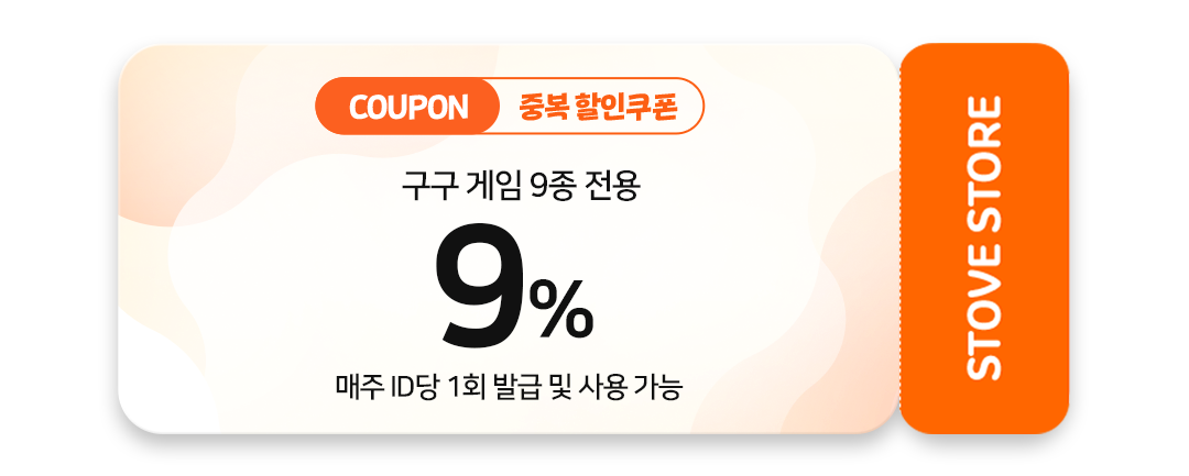 🎊이벤트 혜택 ① 위클리 할인 쿠폰🎟️ 9가지 게임 전용 9% 중복쿠폰을 매주 1장씩, 최대 5장 준다구!? 매주 월요일 00시부터 발급 & 일요일 23시 59분까지 사용 가능!