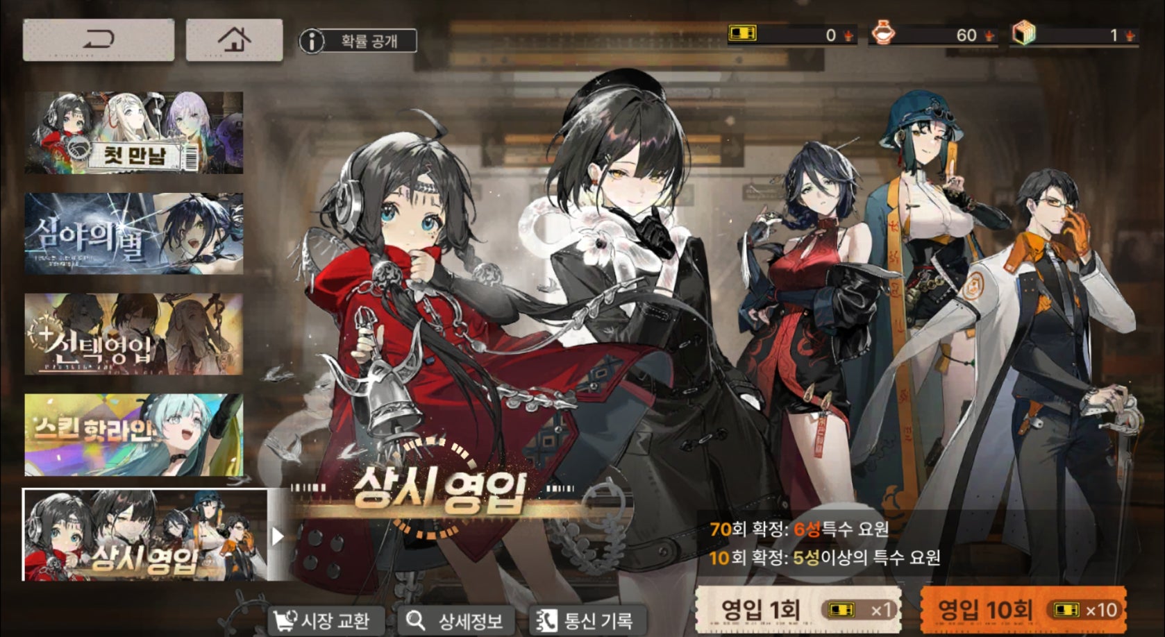 # 이벤트 기간 동안 1명의 6★ 특수 요원 및 2명의 5★ 특수 요원 선택 시 영입 확률이 증가합니다.
