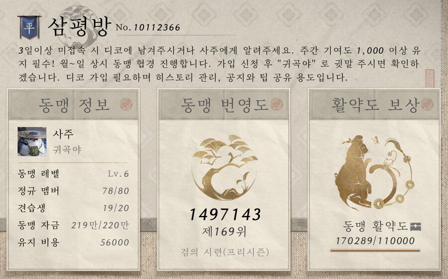 [동맹 모집] "삼평방"에서 신규 동맹원 상시 모집 중입니다.