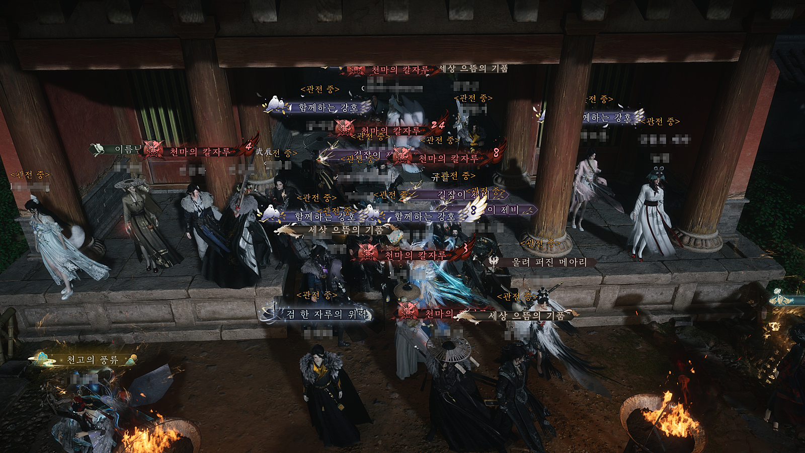 4. 게임 내 궁금한 사항은 동맹챗으로 물어보면 각종 업적작과 탐색 달성율 100% 의 동맹분들이 집단 지성으로 답변 드립니다. 5. 룩과 게임 스크린샷 촬영에 진심인 동맹분들 다수 존재하며 공감대 형성 가능합니다. 동맹의 30%가 이원 문파입니다. 6. 활발한 동맹 이벤트 참여 및 소통 - 파군결전 평균 참여 인원은 20명, 관전까지는 30명 이상 참여하고 있습니다. 항상 같이 응원키를 누르면서 즐기기에 더욱 재미있습니다.