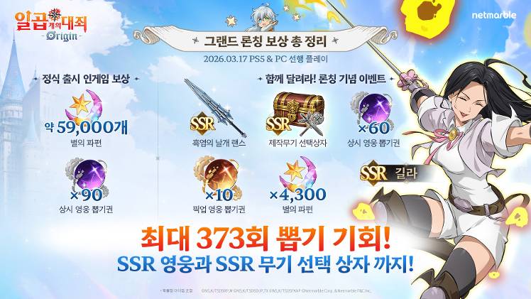 3월 17일(화), <일곱 개의 대죄: Origin>의 선공개와 함께 새로운 모험이 시작되는 그곳에서 별지기 여러분을 기다리겠습니다.