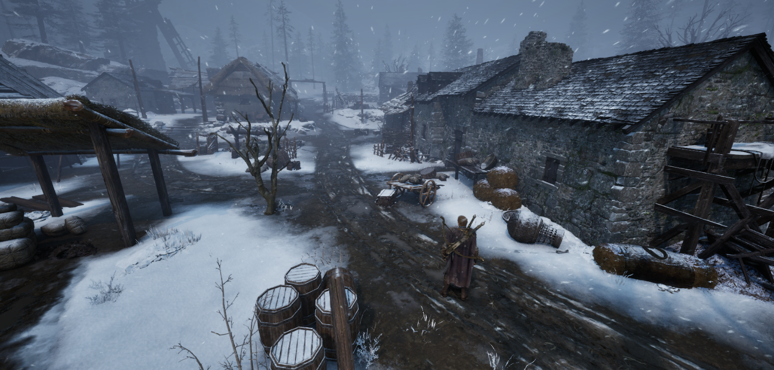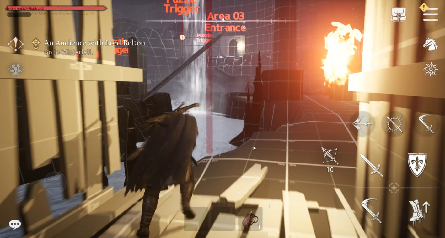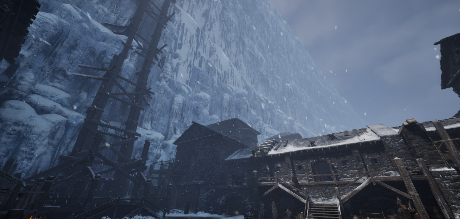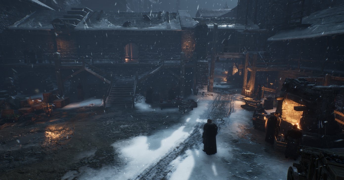 이 두 곳을 게임 안에서 옮겨다닐 수 있습니다. 같은 세계인데 색감이 다르고, 소리가 다르고, NPC의 밀도가 다르고, 건축물의 재질이 다릅니다. 올드타운에서 캐슬블랙으로 갈 때, 유저가 외투를 여미는 느낌이 들었으면 좋겠다고 이야기했습니다. 온도를 만드는 건 기온 수치가 아닙니다. 색감, 공기의 밀도, 발소리의 울림, 시야 거리, 하늘의 높이. 이런 것들이 합쳐져야 '여기는 춥다' 혹은 '여기는 따뜻하다'가 됩니다.