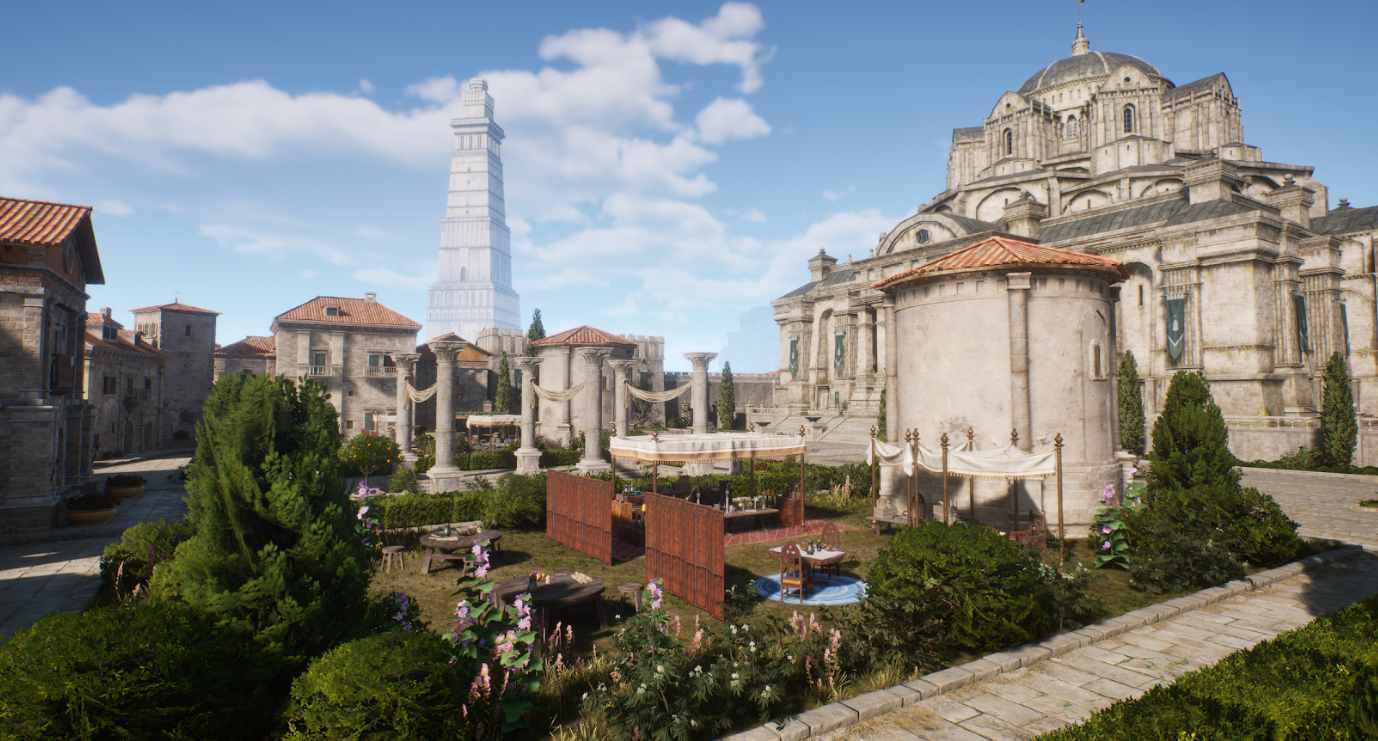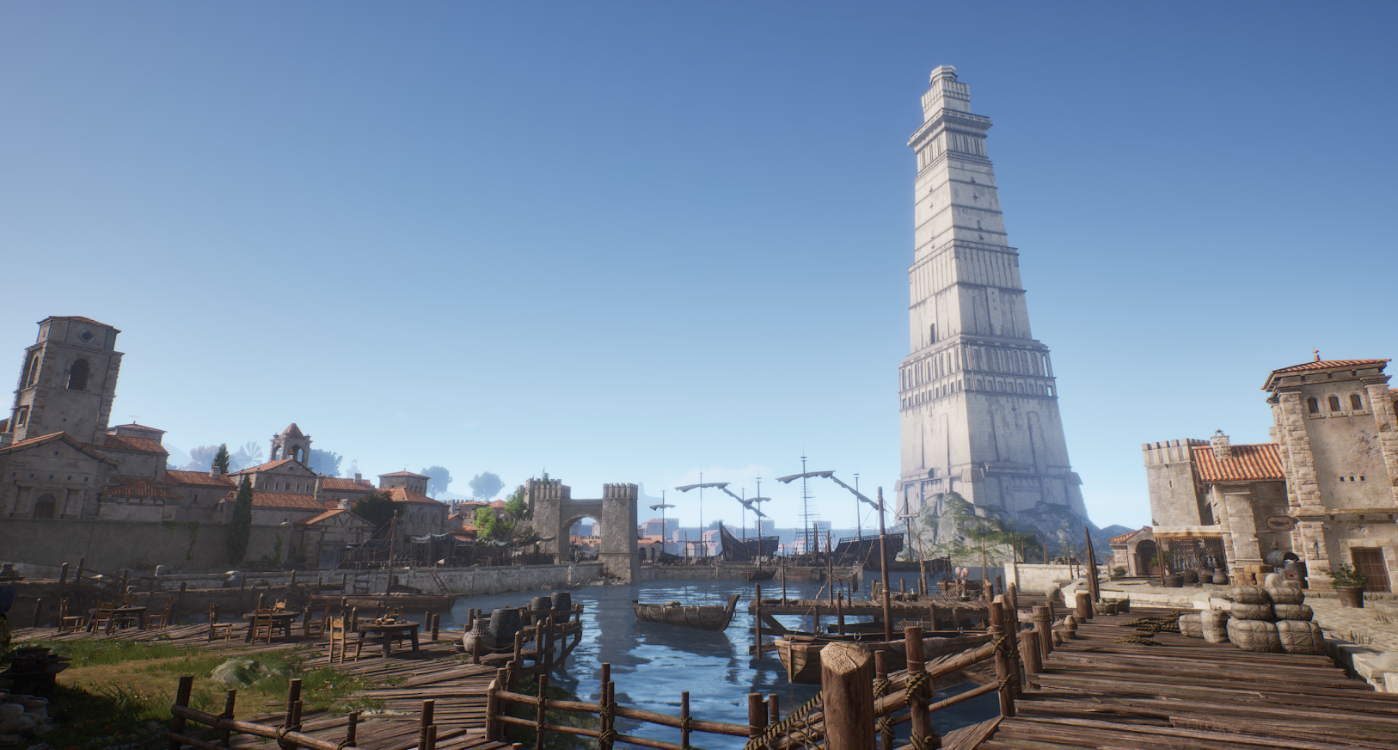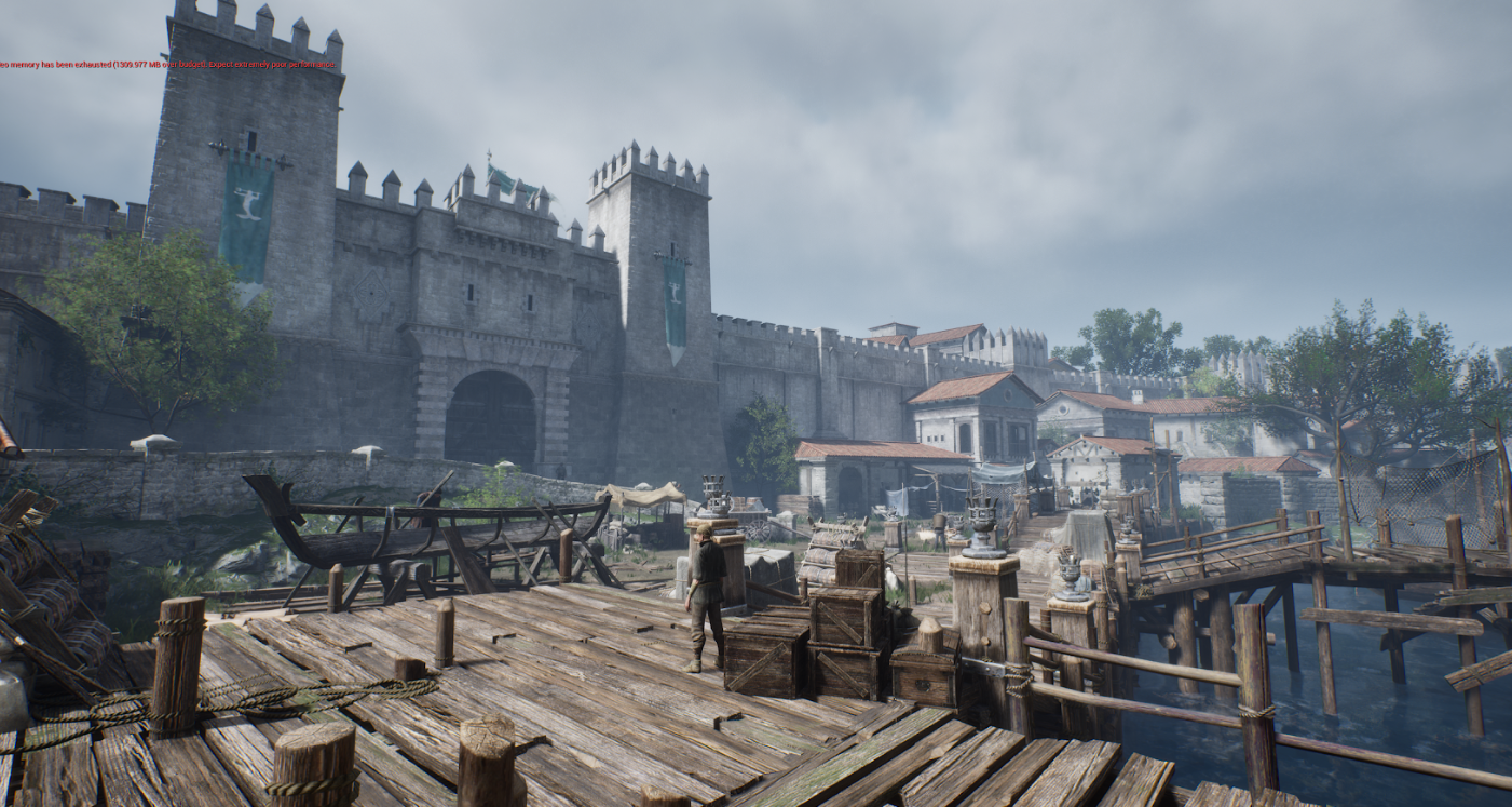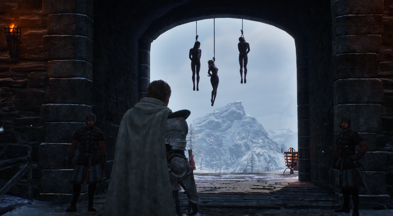 이 두 곳을 게임 안에서 옮겨다닐 수 있습니다. 같은 세계인데 색감이 다르고, 소리가 다르고, NPC의 밀도가 다르고, 건축물의 재질이 다릅니다. 올드타운에서 캐슬블랙으로 갈 때, 유저가 외투를 여미는 느낌이 들었으면 좋겠다고 이야기했습니다. 온도를 만드는 건 기온 수치가 아닙니다. 색감, 공기의 밀도, 발소리의 울림, 시야 거리, 하늘의 높이. 이런 것들이 합쳐져야 '여기는 춥다' 혹은 '여기는 따뜻하다'가 됩니다.