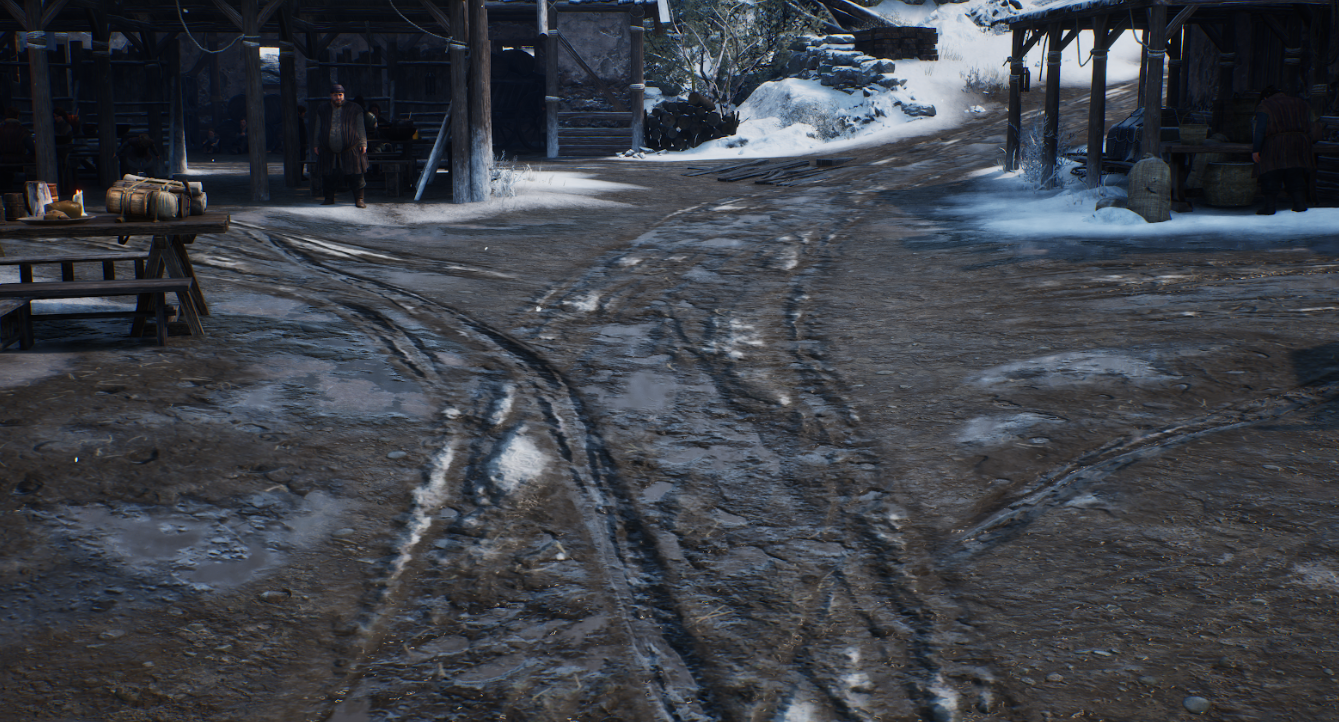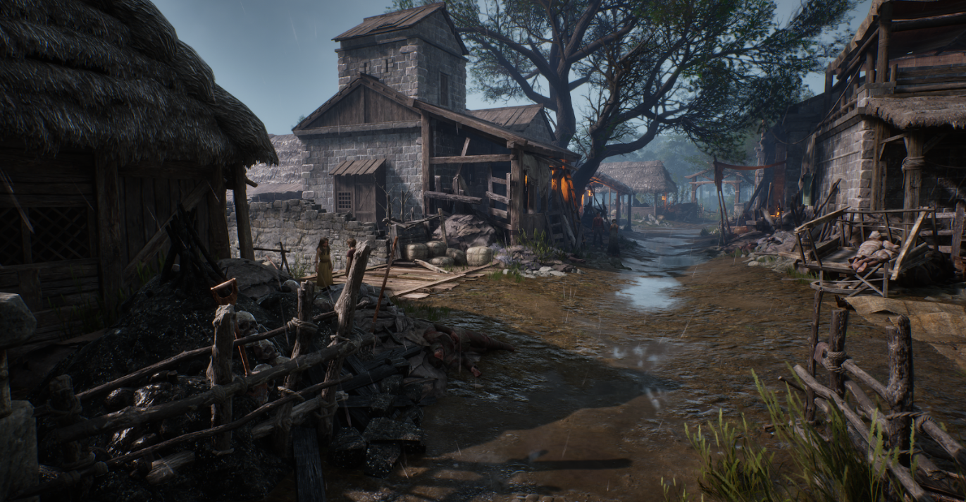 지형 위에 세계가 서면, 그다음은 그 세계를 살아있게 만드는 일이었습니다. 저희 월드 팀이 한 일은 HBO 시리즈를 처음부터 끝까지 다시 보는 거였습니다. 이번에는 배경만 봤습니다. 벽의 재질, 바닥의 상태, 문틈으로 들어오는 빛의 색, 거리에 놓인 물건들. 킹스랜딩의 플리바텀은 한마디로 지저분합니다. 좁은 골목에 천이 널려 있고, 바닥에 물이 고여 있고, 건물은 기울어져 있습니다. 그걸 게임에 옮기려면 '기울어진 건물' 하나를 만드는 게 아니라, '왜 이 건물이 기울어져 있는가'까지 고민해야 합니다. 시체 위에 구더기가 있는 건 혐오 연출이 아닙니다. 이 세계에서 죽은 사람은 누군가가 치워줄 때까지 그 자리에 남아 있다는 뜻입니다. 썩은 나무로 지어진 건축물은, 이곳에 새 목재를 들여올 여유가 없다는 뜻입니다. 진흙 위의 검붉은 피는, 여기서 일어난 일이 아직 끝나지 않았다는 뜻입니다. 환경 하나하나가 이야기를 해야 합니다. 저희 팀에서는 이걸 '세계를 심는다'고 부릅니다. 지형을 심고 나면, 그 땅 위에 누가 살았고, 무슨 일이 있었고, 지금은 어떤 상태인지를 심는 작업입니다.