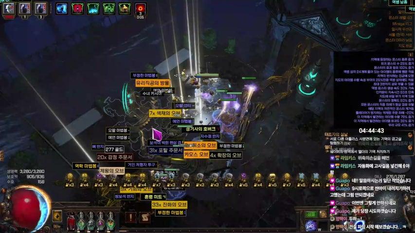 아리모르의 등불에서 신성한 오브가 나오면?![]() 아리모르의 등불에서 아주 낮은 확률로 위와 같이 신성한 오브가 나옵니다. 몇 번씩 보신 분들도 있겠지만 저는 이제서야 나왔습니다. 패치 되어서 몇 개만 나오는 줄 알고 대충 돌았습니다만 생각 보다 훨씬 많이 나와서 좀 더 준비할 걸 하고 좀 후회 했기에 적어 봅니다. 저는 대충 금고만 넣고 돌았는데요. 지도와 갑충석은 바꿀 수 없지만 지도 장치 옵션과 아틀라스 노드는 입장 전에 바꿔서 들어 갈 수 있습니다. 일단 금고 노드 찍고+지도 장치 금고 5개 하면 금고가 6개 이상 나오겠죠? 그림 맨위에서 보듯 개구리나 쥐 넣으면 맵에서 개구리가 나오고 잡으면 신옵이 떨어집니다. 그런데 금고를 열어도 금고에서도 신옵 확률이 있는 개구리가 나올 수 있게 됩니다. 저는 금고 하나에서 3개가 떨어지기도 했습니다. 디바인은 총 25개 나왔습니다. 이름 없는 예견자는 꽝. 그리고 금고의 타락 노드는 찍지 말고 연금+정제 혹은 카오스 들고 가서 옵션을 돌리는 걸 추천합니다. 딥 3개 나온 금고는 희귀한 몹3 마리 추가 금고에서 나왔습니다. 아무튼 몹 팩을 늘려주는 옵션이 나올 때까지 돌리는 거죠. 좀 더 준비한다면 기술자의 오브도 6x5x4=120개 이상 사서 들고 가면 좋을 거고요. 그런데 메이븐을 넣고 가는 바람에 제단 수량을 못 받았네요. 포식자 넣었어야 하는데 실수. 몹팩과 아이템, 화폐 수량을 늘릴 필요가 있는 거죠. 그래서 지도 속성 효과도 최대한 다 찍으면 좋을 거고요. 다만 성소, 광산 등을 찍는 것도 도움이 되는 지는 확실하게 모르겠습니다. 혹시 다음에 나오면 다 찍고 갈 예정. 참고로 저처럼 무리의 확률이 아닌 단일 몹의 확률로 나오면 개구리 말고 탈주 유배자를 넣어야합니다. 카오스 나왔을 때 탈주 유배자 넣으면 100개 씩도 먹곤 하죠. 디바인은 그 정도까지는 아닐테고요. 아직도 이렇게 많이 나올줄 알았으면 철저하게 준비해서 갔을텐데 쪼끔 아쉽네요. 나온 딥은 장막의 오브로 2개로 바꿨고요. 1/2 정도의 확률이었으나 망했습니다.