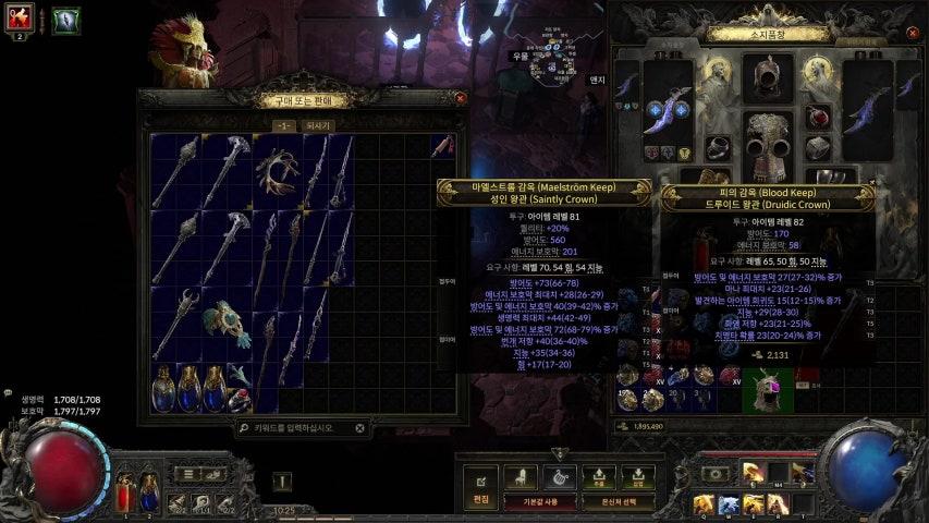 차가운 폭발의 서리 점멸 + 사술 손길 보조(1/0) + 지속 시간 감소 보조(20/20) + 시간의 사슬 (1/0) (시전 속도 증가, 범위 증가, 비전 쇄도 같은 젬을 더 추가하고 싶어서 지팡이를 들어야하나 고민 중) 이렇게 4링크로 영혼포식자 45스택을 쌓고 공시속 225% 증가되면 엄청나게 빨라집니다. 저는 변성 rf도 쓰고 비전 쇄도도 쓰고 시전 속도도 좀 세팅이 되서 1초에 점멸을 6.7번 쓰는 걸로 인겜에서 나옵니다. 실제로는 대기 시간 때문에 그 절반이겠지만 그래도 템포 보다 더 강력하죠. 셀캐 균열 빙폭 중인데 1초에 13.5번 시전 됩니다. 미쳤어요. 동작 속도 성소까지 먹으면 진짜 미쳤다 소리가 저절로 나옵니다. 플리커 왜 하는지 알겠더라고요. 단, 성능을 다 발휘하려면 마나 리젠을 맞춰야합니다. 스킬 1번에 30마나가 들어가면 13.5번이니 405 정도의 마나 리젠이 필요하네요. 저는 번개 골렘+명상+인내 물약을 쓰고 간신히 되는데요. 라비앙가 물약을 쓸 수도 있습니다. 지속 시간 3.3초에 남는 마나도 좀 충분해야 되어서 저는 전령 하나 빼고 명상+일반 마나 물약을 씁니다. 이건 그냥 막 몹에 달려드는 거라 사방으로 오토타케팅 되는 헥블지 같은 걸 해야 고티어를 돌텐데 앞으로만 나가는 빌드라 어렵네요. 결국 토템+도발을 해야할 것 같습니다. (제 셀캐 빌드는 비추천) p.s: 토템으로 바꿨더니 할만해졌습니다. 딜이 반으로 줄었는데도 쾌적하네요. poe는 바닥도 문제고 스킬 때문에 몹도 잘 안보이고 오토 타켓팅도 아니라서 셀캐는 진짜 어지간하면 하는 게 아닌 것 같습니다. 미친 듯이 쏘고 있지만 몹이 조금 움직이면 안 맞게 되고 그 안 맞는 상황을 스킬이 가려버려서 인식도 잘 안되서 계속 허공만 쏘게 되는 경우가 많죠. 그렇게 쎈 몹이 딜 범위에서 벗어나면 몹이 프리딜을 해버려서 캐릭이 다양한 방식으로 죽게 되더라고요. 특히 바닥과 근접 물리딜. 경쟁작처럼 오토타켓팅만 되었어도 좀 할만 했을텐데요. 활쟁이처럼 엄청난 딜로 공격이 곧 방어식으로 하는 것 뿐이죠. 그럼 돈이 많이 드니 아무리 상향해줬다해도 스타터로는 무리죠. 그렇다고 아예 못할 건 아니긴하지만 아무래도 진행 속도는 느리게 되죠. 뉴비 4돌 따기전에 폐사하기 딱 좋음.