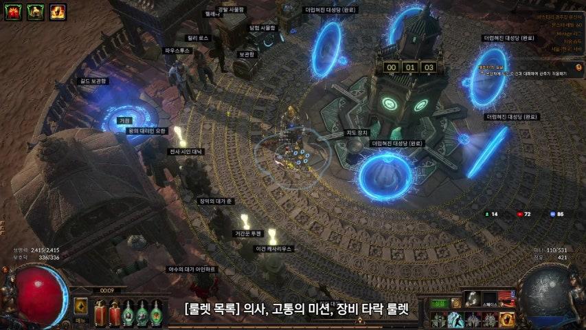 카카오예언 한글화(영어포함)저도 카카오로 이전하고, 영어에만 의존한 채 적응이 되어있기때문에. 영어로 하려고 했지만 결국 한글에 대한 문의가 너무 많아서, 한글로 억지로 하고 있습니다. 카카오를 접한분들을 위한 것입니다. ( 컨트롤 + F 로 검색하세요 ) (카페 글 작성자와 동일인입니다.) 예언(Prophecy) @연관성 예언들@ The Feral Lord I(야생의 군주I) : 남쪽 숲에서 마주치는 타락한 동물 처치(남쪽 숲 또는 열대 섬 지도) The Feral Lord II(야생의 군주II) : 북쪽 숲에서 마주치는 강력한 야수 처치(북쪽 숲 또는 밀림 계곡 지도, 어둠의 숲 지도) The Feral Lord III(야생의 군주III) : 말라붙은 호수에서 마주치는 타락한 동물 처치(말라붙은 호수, 사막 지도, 황무지 지도) The Feral Lord IV(야생의 군주IV) : 사안의 경계에서 발견한 아주 강력한 시체매 처치(사안의 경계, 사안의 지도) The Feral Lord V(야생의 군주V) : 진흙 간헐천 지도에서 발견한 아주 강력하고 성난 상태의 로아 처치 최종 보상 : Yriel's Key (이리엘의 열쇠) [남쪽숲-2장,6장/북쪽숲-2장,7장/말라붙은 호수-4장, 사막지도-Desert map, 황무지 지도-Wasteland map 사안의 경계(시내)-3장, 진흙 간헐천 지도-Mud geyser map] Anarchy's End I(혼란의 끝I) : 지도에서 탈주유배자 처치 Anarchy's End II(혼란의 끝II) : 지도에서 탈주유배자2명 처치 Anarchy's End III(혼란의 끝III) : 지도에서 탈주유배자4명 처치 Anarchy's End IV(혼란의 끝IV) : 지도에서 탈주유배자6명 처치 [탈주유배자:Rogue Exile] Day of Sacrifice I(희생의 날I) : 바알 몰락자 처치(새벽의 희생조각 드랍) Day of Sacrifice II(희생의 날II) : 타락한 희귀 금고를 엶(정오의 희생조각 드랍) Day of Sacrifice III(희생의 날III) : 고난이도의 바알 지역 입장(황혼의 희생조각 드랍) Day of Sacrifice IV(희생의 날 IV) : 부패한(타락한) 희귀 지도에서 적을 처치(심야의 희생조각 드랍) [부패한(타락한) - Corrupted를 말함, 희귀(레어)지도에 바알 오브를 사용한 지도를 가리킴. 바알지역- 이 지역은 1~10장의 지역에서 일정 확률로 출몰] Unbearable Whispers I(견딜 수 없는 속삭임I) : 도서관에서 책을 발견(도서관, 학술원 지도, 박물관 지도, 필사실 지도) Unbearable Whispers II(견딜 수 없는 속삭임II) : 신의 셉터에서 몬스터 처치후 책발견(신의셉터, 궁전 지도, 주택 지도, 빌라 지도) Unbearable Whispers III(견딜 수 없는 속삭임III) : 샤브론 처치후 책드랍 Unbearable Whispers IV(견딜 수 없는 속삭임IV) : 강력한 몬스터 처치후 책드랍 Unbearable Whispers V(견딜 수 없는 속삭임V) : 미궁의 보상방에서 책 발견 최종 보상 : Inya's Key(이냐의 열쇠) [도서관-3장/학술원 지도-Academy map/박물관 지도-Museum map/필사실 지도-Scriptorium map/신의셉터-3장/ 궁전 지도-Palace map/주택 지도-Residence map/빌라 지도-Villa map] The Unbreathing Queen I(숨 쉬지 않는 여왕I) : 몰락한 성소 유적에서 마주치는 악령처치(몰락한 성소 유적, 공동묘지 지도, 묘지 지도) The Unbreathing Queen II(숨 쉬지 않는 여왕II) : 군주의 미궁에서 마주치는 영웅의 혼백 처치 The Unbreathing Queen III(숨 쉬지 않는 여왕III) : 등대에서 마주치는 영웅의 혼백 처치(등대, 등대 지도) The Unbreathing Queen IV(숨 쉬지 않는 여왕IV) : 부패의 사원에서 마주치는 영웅의 혼백 처치(부패의 사원, 거미류 무덤 지도) The Unbreathing Queen V(숨 쉬지 않는 여왕V) : 공동묘지 지도에서 숨쉬지 않는 여왕 처치 최종 보상 : VolKuur's key(볼쿠르의 열쇠) [몰락한 성소 유적-2장, 7장/공동묘지 지도-Cemetery map/묘지 지도-Graveyard map/군주의 미궁-미궁(전직하는장소) 입장하자마자 나오는 지역에 보통 나옵니다./등대-6장/부패의 사원-7장/거미류 무덤 지도-Arachnid tomb map] The Ambitious Bandit I(야심 있는 도적I) : 평소에 출몰하지 않는 지역에서 도적떼 처치 The Ambitious Bandit II(야심 있는 도적II) : 장터에서 마주치는 도적떼 처치(장터, 상점가 지도, 장터 지도, 항만 지도, 골목길 지도) The Ambitious Bandit III(야심 있는 도적III) : 도서관에서 마주치는 도적떼 처치(도서관, 학술원 지도, 박물관 지도, 필사실 지도) 최종 보상 : The Ascetic(고행자) [출몰하지 않는 지역-2장 곳곳에 출현/장터-3장/상점가 지도-Arcade map/장터 지도-Bazaar map/항만 지도-Port map/ 골목길 지도-Alleyways map/도서관-3장/학술원 지도-Academy map/박물관 지도-Museum map/필사실 지도-Scriptorium map] Deadly Rivalry I(죽음의 경쟁I) : 천벌의 힘을 부여받은 경쟁 유배자와 마주침 Deadly Rivalry II(죽음의 경쟁II) : 맹공까지 부여받은 경쟁 유배자와 마주침 Deadly Rivalry III(죽음의 경쟁III) : 고통받는 혼백에 사로잡힌 경쟁 유배자와 마주침 Deadly Rivalry IV(죽음의 경쟁IV) : 성소의 힘까지 부여받은 경쟁 유배자와 마주침 Deadly Rivalry V(죽음의 경쟁V) : 혈맹 구성원들의 도움을 받는 경쟁 유배자와 마주침 최종 보상 : Kintsugi(킨츠키) [경쟁유배자(탈주유배자)-5가지의 모드가 최종까지 붙는다는 말입니다. (네메시스, 온슬럿, 쉬라인 등등) The Warmongers I(전쟁광I) : 여러 군벌을 마주치고 처치 The Warmongers II(전쟁광II) : 여러 군벌과 지원군을 마주치고 처치 The Warmongers III(전쟁광III) : 여러 군벌과 정예병을 마주치고 처치 The Warmongers IV(전쟁관IV) : 여러 군벌과 지도자를 마주치고 처치 [군벌-Warbands] Beyond Sight I(시야너머 I) :