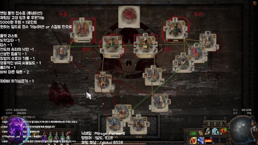 8각 드록스 & 사이러스 00:27 빌드 매커니즘 04:17 아이템 소개 06:08 스킬젬 소개 12:37 플라스크 소개 16:41 패시브 노드, 주얼 소개 20:51 판테온 31:34 사냥 팁 34:46 빌드 후기 및 만족도 33:08 엑하! 안녕하세요! 엑지입니다. 대마법사 폭풍의 낙인 권능 충전 어쌔신 빌드 가이드 입니다. 생각보다 폭풍의 낙인 영상에 관심을 많이 가져주셔서 방송하면서 녹화하고 밤새서 편집해서 만들었습니다. 10엑 미만 가성비 세팅으로 상당히 괜찮습니다. 참고하시길 바라시며 궁금하신거나 감상평 등을 영상 댓글에 인게임 캐릭명과 함께 남겨주시면 생방에서 추첨을 통해 하늘 달리기 악령술사 장화 흥분한 마음 앗지리의 결점 차율라의 존재 각성한 번개 관통 보조 등 아이템을 나누어 드립니다! 밤새서 편집했더니.. 자고 일어나서 일 다녀오고 이것저것 좀 한다음 글로도 풀이하겠습니다... 전 이만 꿈나라로.. POB - https://pastebin.com/CZKsPEDT