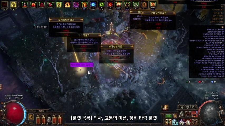 화염벽 구형번개 엘리멘탈리스트 스타터 가이드!차례 00:00 왜 엘리? 00:47 화염벽 구형번개 빌드란? 01:03 빌드의 장단점? 01:33 아이템 및 스킬젬 소개 02:42 플라스크 09:33 전직 어센 던시 소개 10:35 패시브 노드 및 주얼 소개 11:44 판테온 소개 14:36 마무리 15:04 ![]() ![]() ![]() 4.5링크 사냥 영상 스타터로 상당히 괜찮은 빌드입니다. 투 버튼이라는게 좀 귀찮긴하지만 가격 대비 성능이 상당히 좋은 빌드라고 생각합니다. 투버튼으로 하시다가 중, 고자본으로 넘어가면서 원버튼으로 업그레이드 하시면 되시겠습니다. 저역시 중,고자본 빌드까지 소개드릴 생각이라 아마 다음 가이드 때에는 원버튼 화염벽 빌드가 되어있을거 같습니다. 참고용 POB : https://pastebin.com/GPwBMWKM