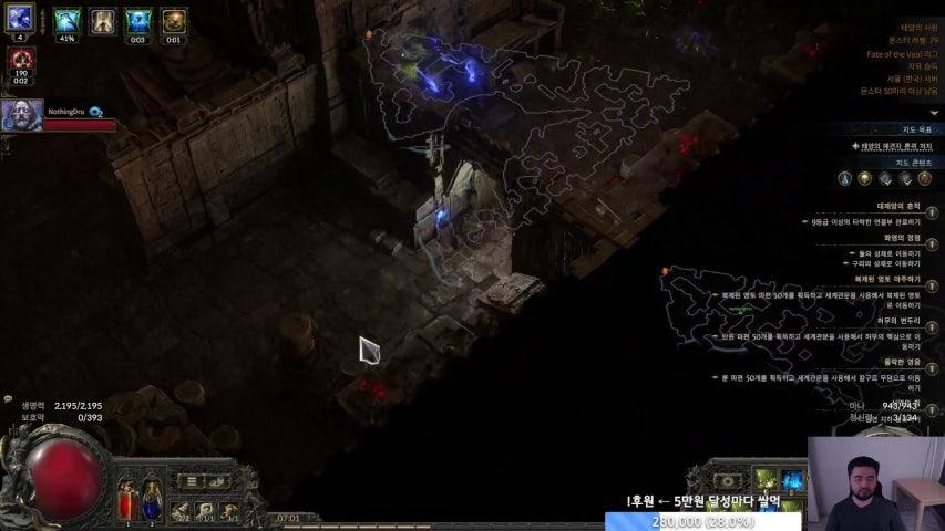 사술 폭발 토템으로 사용하는 빌드 엔드 가이드!안녕하세요 시청자 여러분 엑지 입니다. 오늘은 사술 폭발 토템 빌드를 간단하게 가이드하려고 합니다. 빌드의 전반적인 구성은 충격파 토템과 비슷하다보니 아마 복잡하게 가이드하지 않고 간단하게 진행할거 같습니다. ※ 영상 켜놓고 POB 봐주시는 센스! POB : https://pastebin.com/EswQHp29 100레벨 기준으로 노드가 찍혀있는데, 적당히 빼주시면 됩니다. 시전 속도 찍어놓은거랑, 치명타 중형 주얼 같은거 빼시면 93렙쯤 되겠네요! 사술 폭발에 대해 간단하게 알아보자면, 저주가 걸린 적에게 시전 시 피해 및 범위가 증폭하는 스킬입니다. 대신 이번에 시전 속도 너프를 먹어서 지뢰로 많이 사용하는 추세입니다. 사술 폭발 사용 전 적이 저주에 걸려있어야 효과를 확실히 볼 수 있습니다. 우선 사술 폭발 토템의 장점 및 단점을 알아보고 넘어가겠습니다. 장점 1. 시원시원한 이펙트, 강력한 한방 데미지, 원거리 주문 2. 다른 토템 빌드에 비해 단단한 몸 (방어 오라 세팅) 단점 1. 느린 시전 속도 2. 연약한 토템 지금 제 세팅은 거의 엔드에 가깝기 때문에 그 부분 꼭 참고 부탁드립니다. ---------------------------------------------------------------------------------------- 고유 아이템 부터 소개하겠습니다. 투구 - 모래 폭풍의 얼굴 이번에 나온 신규 투구 아주 잘 써먹고 있습니다. 주문 빌드에 개사기 투구 같네요. 이전 영상에서도 소개했고 언급도 많이 되고있어서 대부분 아실거라 봅니다. 주문의 기본 치명타 확률이 주무기의 치명타 확률로 됩니다. 사술 폭발은 기본 4%인데 투구 효과로 제 무기의 8.25%가 기본 치확이 됩니다. 베이스 치명타 확률을 아주 많이 올려주는 투구라고 보시면 됩니다. ┌ 활력 (마나 가능한 만큼) └ 바알 용암 방패 ┌ (기묘한) 쇠약화 └ (각성한) 신성 모독 보조 갑옷 효과로 생명력을 같이 소모하다보니 활력을 통해 재생을 더 챙겨주었습니다. 결의를 켜다보니 용암 방패를 방어기제로 채용했습니다. 쇠약화를 오라로 켜서 생존을 늘렸으며, 사술 폭발의 첫 타격을 저주 받은 적에게 시전 하도록 했습니다. 저주가 없는 적에게 사용하면 범위 폭발이 안일어나기에 필수입니다. 참고로 제가 켠 오라 전부 키실거면 후술할 '불가능한 탈출' 필수입니다. 갑옷 - 계약 장착된 젬에 29레벨 카오스 피해 추가 보조가 붙은 갑옷입니다. 원래 '영혼의 외투'를 사용하려고 했는데, 저주 케어 및 딜이 부족해 바꿨습니다. 갑옷에다가 3빨 2파 1초를 띄워야하는데, 보리치를 이용하는게 편합니다. 여튼 이 갑옷에다가 젬을 넣어서 총 7링크로 사용합니다. 참고로 토템 설치하면 생명력 소모를 하는데, 전직 어센 및 활력으로 커버했습니다. ┌ 사술 폭발 ├ 치명타 피해 증가 보조 ├ 강화 보조 ├ 다중 토템 보조 ├ (상이한) 주문 토템 보조 └ (각성한) 공허 조작 보조 장갑 - 아세나스의 부드러운 손길 명중 시 적이 시간의 사슬 저주에 걸림 저주의 영향을 받는 시신 근처의 적 실명 유발 시신 근처 적 사망 시 폭발 우선 명중 시 적이 시간의 사슬에 걸리는건 토템이 떄려도 적용 됩니다. 그렇게하면 오라로 켠 쇠약화 범위 밖에 적도 사술 폭발로 쌔게 때려집니다. 그리고 근처 적 실명 유발로 생존도 증가하며, 시폭 효과도 쏠쏠합니다. 다만, 시폭이 다른 시폭에 비해 상당히 밋밋한게 단점 ┌ (기묘한) 고사시키는 걸음 ├ 바알 가속 ├ 지속시간 증가 보조 └ 향상 보조 (기묘한) 고사키는 걸음으로 '위축'을 걸어줍니다. 위축 토템을 안쓰기 때문에 그리고 향상 보조로 퀄리티를 올려 위축의 갯수를 늘려줍니다. 용암 방패랑 고사걸음 번갈아 써주시면서 돌아다니면 좋습니다. 바알 가속은 보스전에서나 한번씩 눌러주세요. 반지 - 극한의 혐오 이번 신규 반지입니다. 너무 잘 써먹고 있네요. 아주 마음에 듭니다. 다음 시즌 당연히 남아있겠죠? 저희는 5권능으로 5개의 저주를 걸 수 있습니다. 장갑 1개, 오라 1개, 그리고 신비학자의 낙인으로 3개를 걸어줍니다. 여유가 된다면 장갑에 타락 옵션으로 다른 오라 써주셔도 괜찮습니다. ---------------------------------------------------------------------------------------- 레어 아이템 소개 무기 - 마법봉, 룬 단검, 셉터 충파 토템 무기랑 별반 다를게 없습니다. 모든 카오스 주문 +1 분열 무기 하나 가져와서 작했습니다. 무기 치명타 확률이 높을수록 좋은데, 자본에 따라 골라서 구매해줍니다. 여기다가 주문 피해 에센스 같은거 사용해서 적당히 띄어주었고 접미 자리에다가 제작대 옵션을 붙여서 무기 치명타 확률을 올렸습니다. ┌ (기묘한) 열광 └ 신성한 축복 보조 (1레벨) - 화염 질주 열광에 신성한 축복 보조를 사용해서 가끔 사용해줍니다. 섬뜩한 충전기로 에너지 보호막을 소비하기에 무리는 없지만 레벨이 높아지면 소모값이 늘어나기 때문에 1레벨로 사용했습니다. 방패 - 쉐이퍼 베이스 충격파 토템이랑 똑같습니다. 다만 모든 카오스 주문 젬이 붙어있군요. 쉐이퍼 베이스 방패에다가 '노란 생기' 구매해와서 '카오스 카옵'돌렸습니다. 대략 250번 정도 돌려서 뽑았는데, 여러분은 다를지도.. 토템 최대치 +1을 필수로, 젬 레벨 혹은 장착된 젬 점유 효율 3