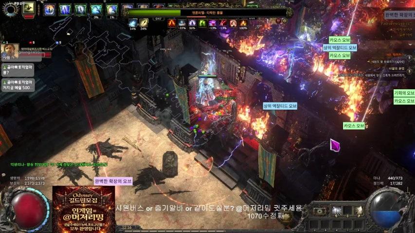 1. 타 속성에 비해ㅜ하위티어 스킬이 개쓰레기다 솔직히 어캐든 보주랑 벽으로 딜한다해도 동티어 다른스킬보자 번개 번개불꽃(굉장히 무난한 스킬) 연쇄번개 (굉장히 강력한스킬) 얼음 얼음폭발(밀리긴해도 무난) 한파(동결적에게 강하게 때림) 얼음벽 얼음폭탄 불 화염벽(애는 딜이 아닌 버프용임) 일제 불씨 사격(그나마 딜좀나오지만 광역딜이 없어서 애매) 태양의보주 (설치형 도트딜) 소각(엄...2초이상 유지해야 딜나옴) 그래서 어쩔수없이 도트메인딜로 가야함 2.광역딜 부재 화염벽을 요새달면 범위좋아지지만 딜이 반토막난다 근대 저 스킬중 딜지분이 놀랍게도 가장 높다 3. 그나마 존재하는 대체제는 지식이 필요하다 무기스킬 "살아있는 폭탄" 와우저면 살폭으로 더 잘읽히는 그 스킬 2.5초뒤에 터지는 적에게 직접 심는 폭탄이다. 1개제한이고... 딜은 그다지 좋진 않지만 광역딜이죠. 범위는 음... 적당히 좁은정도 불편하진않지만 넓다곤 보기 힘든정도? 근대 2.5초뒤 약한딜 누가쓸까 생각할만한 스킬입니다. 일단 이 2.5초는 지속시간이란 개념이다. 즉 지속시간감소를 달면 30퍼 줄어서 1.75초로 줄어서 그나마 보기 좋아진다. 근대 여기다가 갯수+1 지속시간50퍼 감폭 보조젬을 단다면? 약 1초정도 뒤에 터지지만 2개가 설치되고 각각 타이머 돌아서 시전속도 생각하면 거의 계속 쓰는 무난한 평타기가 됩니다. 심지어 적근처에 대충 시전만 하면 잘 붙어서 에임이슈도 적은 스킬이죠. 근대 이건 보조젬 추천에도 안뜨는 스킬들이라 직접 달아둔 보조젬임... 그래서 연구도 편한디 더좋거나 비슷한 다른속성들이 현재 강세인듯