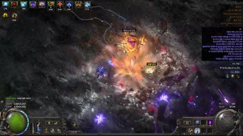 하면서 느낀건 정말 탱키하고 단 한번도 죽지 않았다는것.. 그래서 시원시원한 맵핑이 가능한 번개창에 접목을 시켜보았습니다. 에쉴은 마음만 먹으면 6000~7000대는 기본으로 가져갈것 같았고 딜에 초점을 좀 더 둔 저는 4500 에쉴 수치로 맵핑을 하고 있네요. 다만 활빌드와 빙하창 빌드처럼 보스 단일딜은 너무 안나오고 있습니다. 1~3초컷이 보스마다 가능하던게 폭풍창으로 6~10초는 던져야하니 패턴이 있는 보스는 스킵이 되지않아 시간을 좀 많이 잡아먹더라구요. 혹시 참고할만한 CI빌드 아마존 혹은 저와 같이 CI 빌드를 연구중이신 선생님 계시면 정보 공유 가능할까요? 맵핑은 전혀 문제가 없는데 맵핑보스나 우버보스에서 답답한 모습들이 많이 보이네요. 폭풍창 말고 다른 스킬을 넣어줘야하나 고민중에 있습니다.