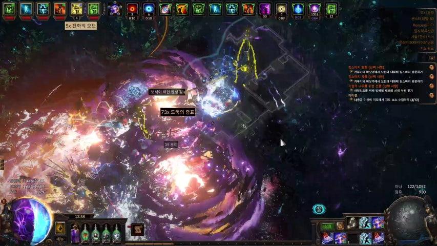 오라클 늑드루는 왜 급습 늑대를 써야 하나?오컬 늑드루 대부분이 급습에 동결의 징표를 넣고 있죠. 그런데 빌드업을 할수록 빼는 게 좋다고 봅니다. 뉴비라면 무적(동징 대신 쓰는 브루투스 효과) 늑대들의 몸빵이 생존에 크게 도움이 되니 동징은 처음부터 안 쓰는 게 좋을 거고요. 1. 포식자의 징표와 비교 동결의 징표를 넣는 이유가 빠른 동결 때문인데 시네 장갑(강추)을 끼게 되면 동징의 '동결 준비 완료' 옵션이 무옵이 됩니다. 70%에 동결 걸리는 게 50%에 동결이 걸리게 만드는 상위 옵션이 있거든요. 동징에 냉기 피해 추가 30%가 있는데 제 pob에서 보면 딜이 10% 밖에 늘지 않더군요. (원소 관통이 낮기도 하고 피해 추가를 무기와 노드 여기저기서 챙겼고 노출도 아직 pob 지원이 안되서 적게 나오는 듯 합니다. 바타이르의 복수로 냉피추가 48~69나 있네요. 타오르는 치명타도 15% 늘고 해서 전 10%가 되는 듯) 그런데 급습 기본 징표인 포식자의 징표는 +20%퀄 하면 적 하나당 4%씩 60%까지 받는 피해가 늘어납니다. 받피증은 증폭 옵션이라 보통 60% 거의 그대로 딜이 늘어나게 됩니다. @ 급습 늑대는 20렙에 7, 30렙에 8마리이고 오컬이면 11시 소모성 증가를 1포 찍어서 2마리 추가할 수 있습니다. 그럼 본체+1 로 10-11체가 되어서 40~44% 딜이 추가 됩니다. (저는 급습 19렙 젬 + 무기 근접 7렙 +목걸이 근접 3렙 + 셉터 소환수 3렙 = 32렙) 동징이 퀄까지 50%(제 경우 +냉피추10%) 넘게 동결 속도가 증폭 되지만 포식자로 딜이 44% 늘어나면 동결 속도도 44% 증폭 되는 효과가 있어서 동결에 걸리는 속도조차도 별 차이가 안 나게 됩니다. (평타 무기 셋에 늑대 무리를 넣었다면 늑대 +7마리 추가 되어 최대치인 60%가 됨) 결론적으로 동징을 쓰면, 동결 걸리는 속도도 얼마 안 나는데 딜과 생존은 많이 차이가 나서 손해입니다. 특히 중요한 생존에 아주 많이 도움이 되는, 몹과 비벼서 본체에게 몹이 붙는 걸 방지해주는 무적 늑대가 7-10 마리나 항시 있다는 점이 매우 큽니다. 늑드루라면 늑대들의 왕이어야겠죠. 백성이 없는 왕이 무슨 의미 --------- 셉터를 쓴다면 늑대 무리는 다른 스킬 절반의 정신력으로 쓰게 되는 거라 효율적이게 됩니다. 다만 정신력이 부족하니 무기 셋 하나에만 늑대 무리를 넣고 다른 쪽은 같은 정신력인 60을 필요하게 되는 얼음의 전령 같은 젬을 넣고 무기 셋으로 광역과 단일 딜을 나눠 쓰는 게 좋습니다. 늑대 무리에는 - 힘줄 절단, 실명, 마타, 10% 명중 피해 감소 젬 - 을 기본으로 넣게 되고 카오스 면역을 찍는 경우에는 딜을 35% 증폭 해주는 소환수 맹약2 젬을 넣을 수 있게 됩니다. 늑대 무리가 필수는 아니니 안 써도 됩니다. 셉터를 안 쓰는 경우는 더더욱 안 쓰겠고요. ------------- 2. 동징 대신 늑대를 써서 맵핑 스타일을 바꿈 (달공 안 쓰고 막 달림) 달의 공격을 주로 쓰는 맵핑 스타일은 느릿해서 조금 답답하더군요. 그래서 달공을 거의 안 쓰고 급습과 평타만으로 보스까지 쭉 달리는데 이게 스피디해서 훨씬 더 재밌더라고요. 심연은 어쩔 수 없지만요. (심연에서도 늑대가 몹에게 달라붙어서 생존에 큰 도움이 되고요) 늑대들이 몹 길막을 하니 그냥 달려도 그다지 걸리적 거리지 않습니다. 걸리면 급습으로 점프해서 터트리고 또 달리고요. 또, 딜 매커니즘이 어떻게 되는 지 모르겠는데 포징이 걸린 몹에게 저는 딜이 44% 증폭 되는 것 때문인지 노란 몹도 대부분 급습 한 방에 터집니다. 안 죽고 피가 좀 남아도 달의 축복이 있어서 그냥 급습 하고 지나가면 죽어 있습니다. 혹시 피가 많이 남아 있으면 평타로 좀 때리고요. 달축이 빠질 때마다 딜이 훅훅 줄어들어서 평타까지 써야하는 상황이 종종 생깁니다. 그래봤자 한두 방 정도지만요. 급습 쿨이 아직이면 평타로 달려 들면 되지만 그래도 급습이 빠르고 시원하죠. 쿨은 2초 이내로 맞췄습니다. 급습+평타만으로 달리면 늑대 무리를 쓰는 경우, 얼음의 전령은 안 킨 상태가 되는데 그럼에도 달축 덕분에 펑 터트리면서 달릴 수 있습니다. 뭔가 좀 부족하다면 늑대 무리 빼고 얼전 쓰면 되는데 전 상관없더라고요. 어짜피 2셋 얼공에서는 얼전이 있으니까 심연처럼 앞에서 쳐도 뒤에 까지 사방으로 다 터트려야 할 때에는 얼공을 쓰면 되니 문제가 없습니다. 빠르게 스스슥 달리면서 급습 점프, 평타 돌격 하면서 앞을 다 깨부시면 재밌다가도 달공을 쓰면 멈칫하고 버벅이게 되니 달공은 점점 안 쓰게 되더라고요. 그런데 이런 식으로 맵핑 스타일을 바꾸니까 맵 보스한테 급습하고 평타로 한참 때리다가 왜 피가 안 달지? 하게 되네요. 달공 써야는 걸 까먹음 3. 10시 고통의 조율 왕노드를 쓸 수 있다 10시 고통의 조율을 찍으면 딜이 12~3% 줄더군요. 그런데 무리 격려를 찍을 수 있어서 만약 딜 증가 80% 풀로 가능하면 줄었던 딜이 상쇄 됩니다. 10마리 50%라도 그 옆의 녹이는 화염으로 초당 1%씩 10% 받피증을 얻게 되면 상쇄하고도 남게 되고요. 2-3포인트 낭비한 건 다른 노드로 이득을 볼 수 있는데 /화염 8% 추뎀 /피해 20% /치피보 25%+받는 치피보 감소 25% /마나 재생 20%+마나 효율 15% / 이렇게 4개를 찍으면 충분히 2-3포인트 값을 한다고 봅니다. 물론 안 써도 되고요. ---------