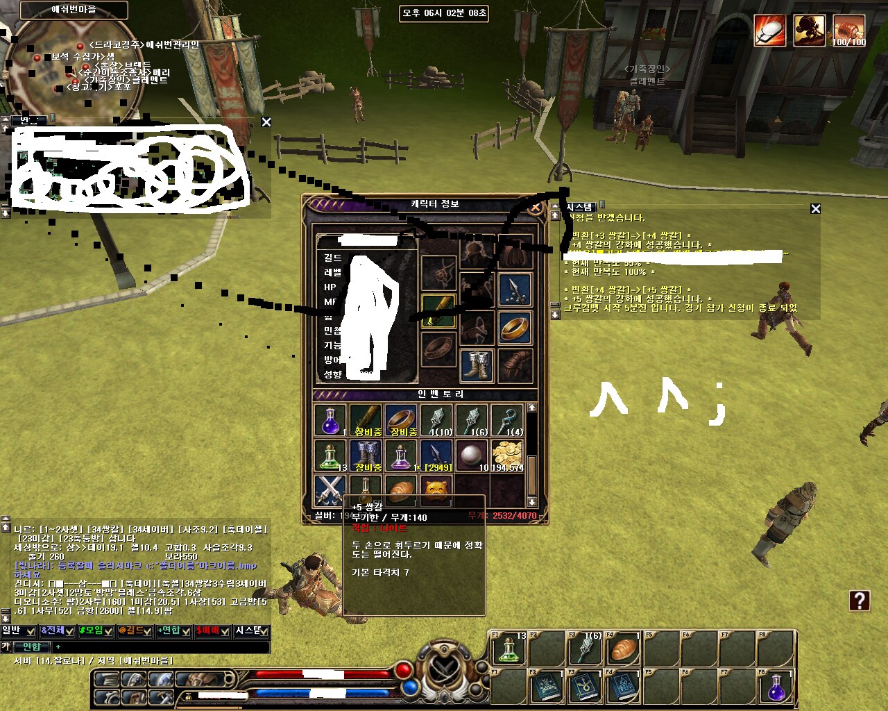 눌렀습니다 .=>5쌍성공 제캐릭 이거 방어구 완전 말아 먹구 무기만 연속 6축수렵 5쌍 만들어 주네요