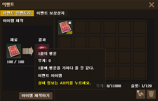 ③ 'R2 이벤트 증표' 아이템 100개로 이벤트 제작을 통해 '1월의 행운' 아이템을 획득할 수 있습니다.