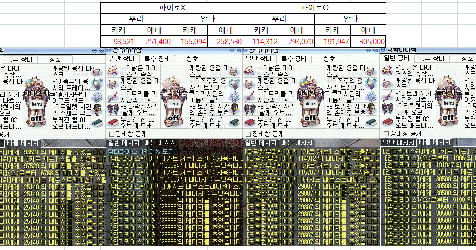 뿌리&암다 카캐VS애데상고와 일고 보스 데미지는 똑같이 들어가기에 데미지 측정하기 편한 일고에서 데미지 실험