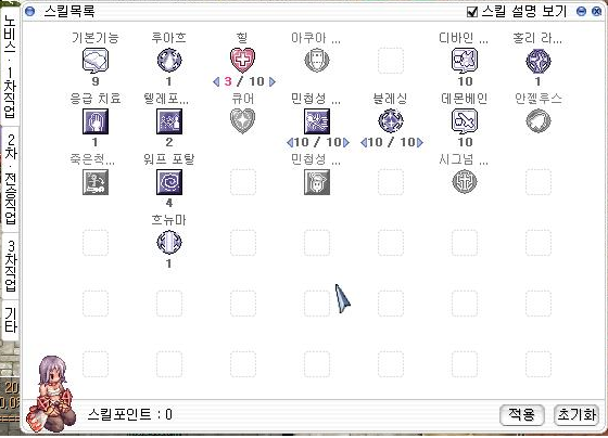 점핑수라 성장 보고서(현재 117/27)서론 저는 오픈베타때부터 라그나로크를 시작 했으나, 아직도 고랩 캐릭 하나 없는.. 이를테면 외부인 같은 플레이어였습니다. 그러던 중 2014년 중반경에 친구의 권유로 라그나로크에 다시 복귀하면서 15년만에 제대로 라그나로크를 즐기게 된 사람인지라 이번 점핑에도 큰 기대를 걸고 있었습니다. 점핑 이야기가 나오면 늘 고민하는 부분이 바로 어떤 캐릭터를 선택해서 서포트 기간중 키워낼 것인가 하는 부분입니다. 고랩 캐릭터가 없는 상황에서 제대로 캐릭터를 육성하기 위한 전반조건을 검토 하며 친구와 이야기를 통해 마도미케와 섬광나찰 수라중 최종적으로 섬광나찰 수라가 낙점 되었습니다. 이유는 자기 버프 가능, 강력한 한방 취향에 맞는 근접캐릭 등입니다. Base Lv 성장 처음 받으니 70/0 챔피온을 주더군요. 점핑 지원가들에게 필요한 지원을 받고 난후(어머니 등) 바로 낙원단으로 직행해서 갈기털을 뿌렸습니다. 71랩 달성 주요장비 RWC 메이스, 반지(물공스카작), 어질 10 타천, 9검은 가죽부츠(타나토스 증오작), 10 라이더 슈츠 등. 어질위주 장비 섬광 수라 특성상 스탯에 어질 투자가 없으므로 본격적인 딜스킬이 나오기 전에는 평타및 일부 오토스킬로 사냥해야 하는 상황이라 어질 위주 템으로 보완 스탯 배분 덱스 60 나머지 힘 스킬 힐3, 워프3 ![]() 71~85 : 용지성 식양 퀘 이후 바로 알베르타 => 꾸냥에게 만제니를 던져주고 바로 용지성으로 향했습니다. 그리고 지겹도록 식양잡고 낙퀘 완료를 반복해서 86랩을 달성하게 되었습니다. 필드 전체에 지속성 몬스터만 출몰하는 관계로 속부 받고 치고 받으면서 꾸준히 컸습니다. 사용 스킬은 발경으로 자체로 300% 증뎀에 대상 외에 몹들은 넉백을 주는 매우 운용에 유용한 스킬입니다. 주요장비 : 변화없음 스탯배분 덱스 60 나머지 힘 주요 스킬 발경(퀘스트 스킬 : 점핑시 자동습득) 86~91 : 85낙퀘 전승전 가장 귀찮은 구간이 아니었나 싶네요. 낙원단 2층 86~91퀘를 통해 성장했습니다. 거북섬 등 필요한 워프는 점핑 지원가들이 충분히 지원해 주고 있으니 별 문제 없이 컸었네요. 주요장비 : 변화없음 스탯배분 덱스 60 나머지 힘 주요 스킬 육합권, 발경 91~99랩 : 91낙퀘, 노그균, 96랩 이후 마그마링 인내를 요하는 구간이긴 했습니다만 91퀘를 바로 진행하진 않았습니다. 당시 경험치 이벤트 중이었는데. 문제는 91 달성시 잡 51을 못 찍은 상황이었기 때문입니다. 이에 지인팟 동원해서 노그균으로 51랩을 달성 하였습니다. 당시 베렙이 94랩 정도 되었던 듯 합니다. 그리고 51랩 달성즉시 낙단에 가서 91퀘를 보고하여 잡레벨을 같이 올리기 시작합니다. 주요장비 : 변화없음 스탯배분 덱스 60 힘 99, 나머지 바이탈 주요 스킬 육합권, 연환전신장, 맹룡과강 ![]() 주의 2차에서는 궁신/광축기를 익히고 아수라 및 금강을 마스터 할 경우 스탯이 남습니다. 이 포인트는 1차 스킬중 마스터 못한 힐(7포) 및 워프(1포) 흐뉴마(1포)에 투자 합니다. 이후 남는 6포인트는 취향껏 배분합니다. 제 경우에는 운기조식 과 이화접목에 각 3포인트씩 배분하였습니다. 99랩~전직~100 잡 51을 달성후 실제 전직 요건을 달성하는 것은 시간 문제이므로 전직퀘스트를 사전 검색했습니다. 그리고 생각보다 단순한(길크나 미캐에 비해) 수라 전직 퀘스트를 확인하고. 잡 65랩에 퀘스트를 시작하였으며. 91낙퀘를 마지막으로 돌면서 데저트울프 1000마리 퀘를 같이 완료 했습니다. 그리고 99/70을 완료하고 미보고 낙퀘를 3개가량 남겨두고 전직. 그간 누적된 경험치와 낙퀘 보고 경험치로 바로 100랩을 달성 했습니다. 주요장비 : 시힘부, 대행자, 라이드워드 모자, 카르가메이스 스탯배분 덱스 60 힘 100, 바이탈 82 주요 스킬 육합권, 연환전신장, 맹룡과강 100~101 : 포트첫 퀘스트, 병원퀘 포트말라야 일퀘를 위한 사전퀘스트와 병원퀘스트를 진행하여(2층 입구에 부적 붙이는 부분까지) 101랩을 만들게 되었습니다. 101~111 : 포트, 낙퀘, 사라 포트말라야 일퀘는 매우 단순하며 제제링을 잡는 시간만 잘 배분한다면 전체 10종 퀘스트를 완료 하는데 약 40여 분이 걸리게 됩니다. 매일 시간 맞춰 빠지지 않기 진행 하였고, 남는시간에는 노그로드 및 병원에서 솔로플레이를 하였습니다. 스킬은 천라지망을 우선 마스터하여 이를 기반으로 모든 퀘스트를 섭렵하기 시작 했습니다. 다만 원거리 몬스터의 경우 궁신탄영으로 접근하여 치거나 혹은 2차 스킬인 탄지 신통 등을 동원하여 잡았지만 최대한 천라지망이 유효한 사냥터를 위주로 성장하였습니다. 주요장비 : 시힘부, 대행자, 라이드워드 모자, 카르가메이스 스탯배분 덱스 60 힘 100, 바이탈 90 주요 스킬 천라지망!! 111~현재(117) 포트, 낙퀘, 사라 101랩과 별로 다를 것 없는 흐름이지만 플레이 흐름이 바뀝니다. 점혈-구 및 섬광연격 그리고 호포6랩을 찍을 수 잇는 스탯이 되었을때 저는 원래 목표로 하였던 섬광 트리로 변경하였습니다. 천라5 => 천라1 호포6랩(범위 넓어짐), 점혈-구(몰이 사냥 가능) 주요장비 : 시힘부, 대행자, 라이드워드 모자, 카르가메이스 스탯배분 ![]() 주요스킬 섬광연격(호포), 점혈-구 ![]() 이후 목표 스탯 힘 120 이