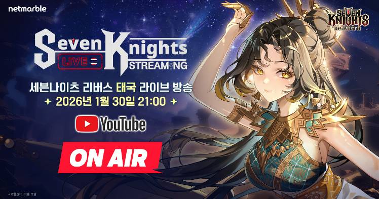 1월 30일(금) 세븐나이츠 리버스 태국 라이브 방송 <Seven Knights Live Stream>에 관한 상세한 정보는 추후 별도 공지를 통해 안내드리겠습니다.