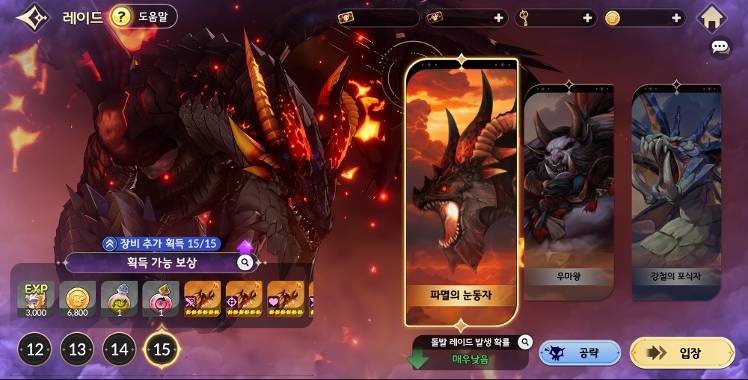 5. 입장권 획득 돌발 레이드 입장권은 레이드 11~15단계 클리어 시 확률적으로 획득할 수 있습니다.