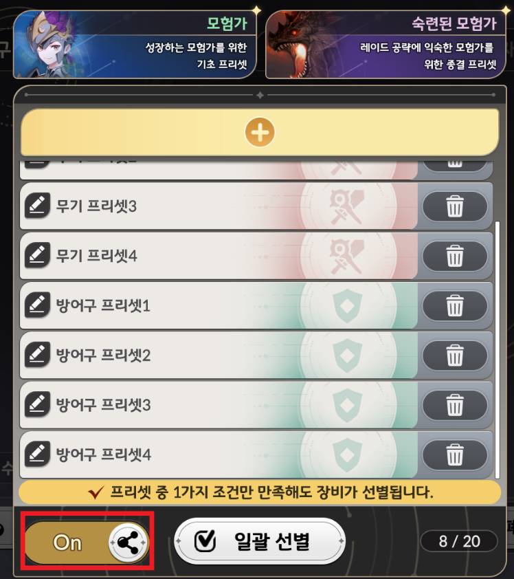 - 저장 가능한 [장비 프리셋]의 개수가 30개 → 100개로 확장됩니다.