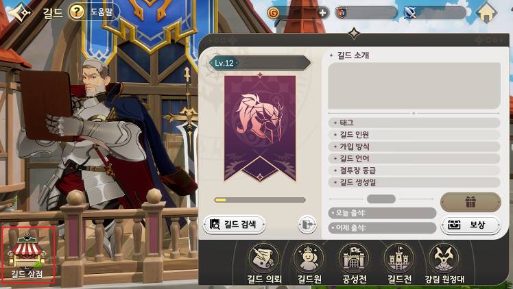 - 길드 메뉴 내 [길드 상점] 버튼이 길드 로비 좌측 하단으로 이동됩니다. - 길드 레벨이 15 레벨까지 확장됩니다.