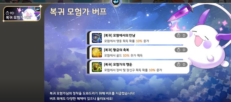 📍 신규&복귀 모험가 혜택 안내 개선 - 메인 로비 [이벤트] 아이콘 우측에 [신규&복귀] 모험가 혜택 버튼이 추가됩니다.