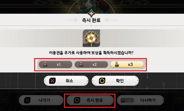 - [미니게임] 종료 후 결과 화면에 즉시 완료 버튼이 추가됩니다. - 즉시 완료 기능은 각 미니 게임(기억력 게임, 인스턴트 돼오) 1회 클리어 이후 결과 화면에서 이용 가능합니다. - 즉시 완료 버튼 입력 시 진행 횟수를 선택할 수 있으며, 선택한 횟수에 따라 미니 게임 이용권이 추가 차감됩니다. : x1, x2, x3 - 즉시 완료 기능 이용 시 직전에 종료된 미니 게임 진행 정보로 클리어 처리되며, 선택한 횟수에 따라 달성 보상을 추가 획득할 수 있습니다. ex) 기억력 게임 1,000점 이상으로 클리어 후 즉시 완료 기능 x3 이용 시, 기본 보상 룰렛 코인 3개 + 추가 지급 9개 (미니게임 이용권 총 4개 차감) 📍시련의 탑 신규 시즌 시작 및 개선 - [시련의 탑]의 새로운 시즌이 시작됩니다. - ‘시련의 탑 시즌 11’은 5월 14일(목) 06:00 (UTC+9)까지 진행됩니다. - 시련의 탑 전체 층이 축소됩니다. (20층 → 10층) - 특정 층에서 선택할 수 있는 일부 [달성 메달 설정] 내 디버프 조건이 변경됩니다.