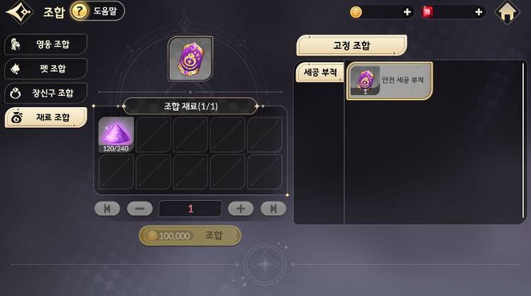 * 조합 완료 후 각 아이템은 즉시 가방으로 지급됩니다.