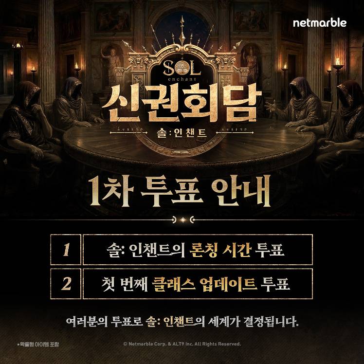 자세한 내용은 아래를 참고해 주시기 바랍니다. <솔: 인챈트> 신권회담 1화 투표 안내 (오픈 시간, 신규 클래스)