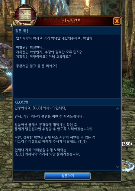 궁수 공손한 진정문의 결과제가 진정문의를 2번 했습니다. 다른내용으로 애매모호한 답변으로 글씨하나 안바꾸고 붙혀넣기 하나보내요.. 아래 게시판에 제가 진정문의한 다른글 있습니다.. 토시하나 안틀리네요 성의가 없네.. ㅎㅎ 저를 너그럽지 못한 사람으로 만드네요 ㅋㅋ