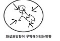 원의 중앙을 보고 방막해야됩니다.